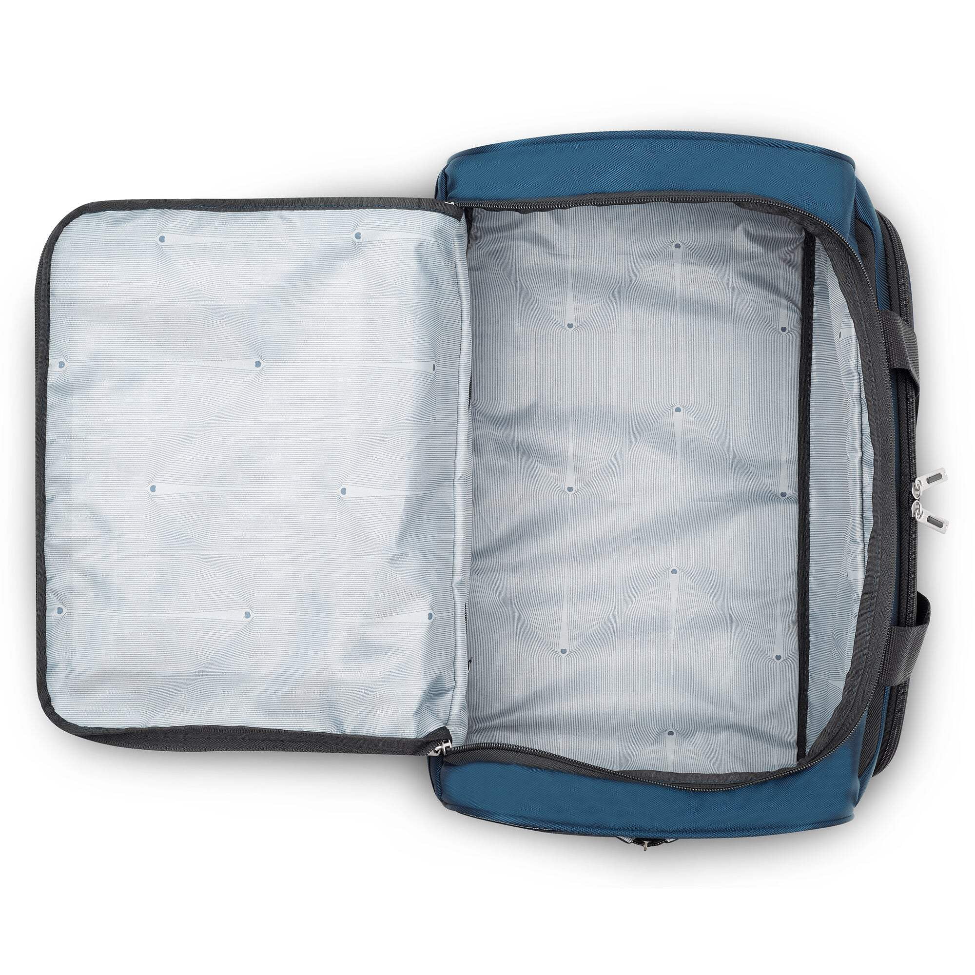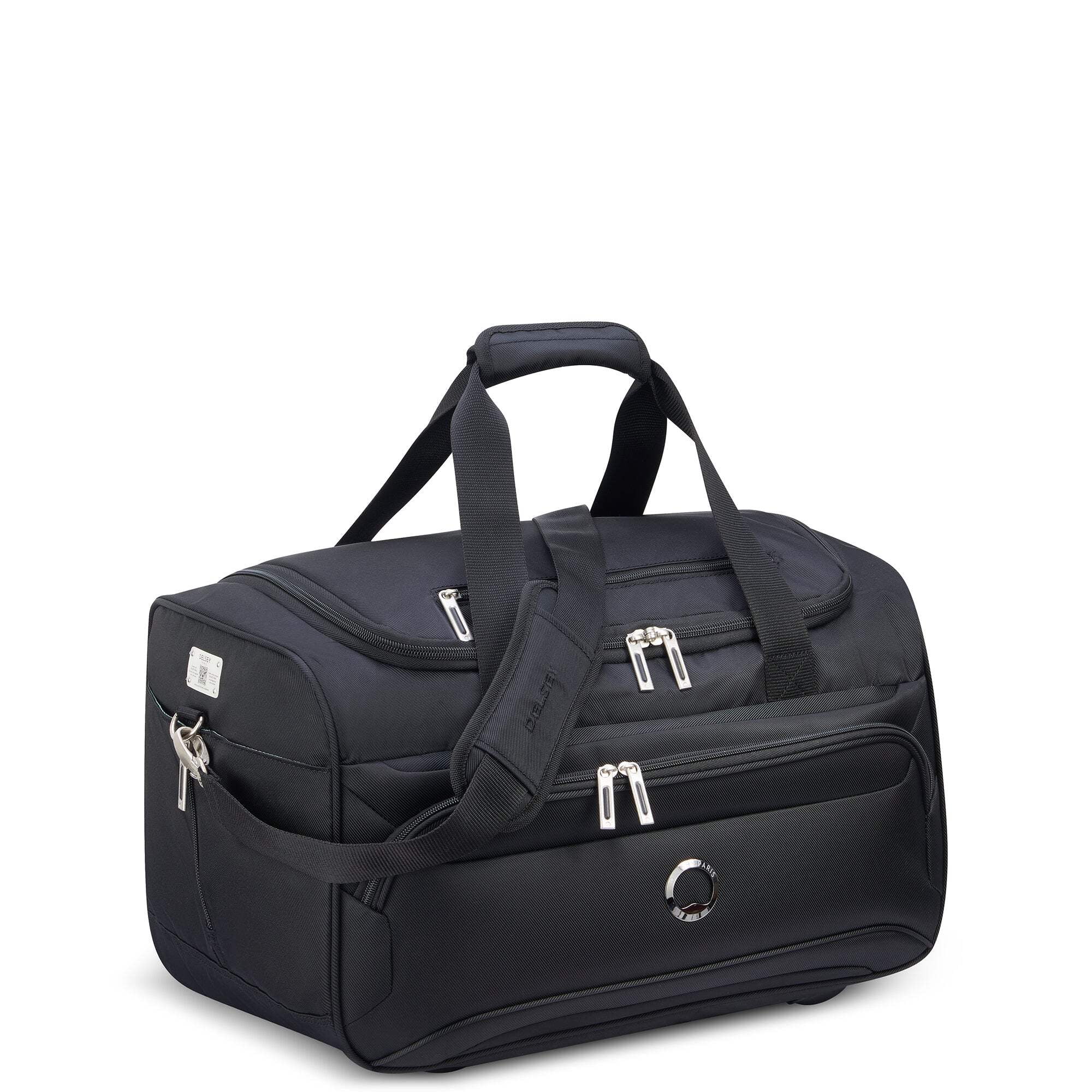 DELSEY PARIS Sky Max 2.0 carry-on duffel bag is versatile with well-designed organization and a roomy packing compartment to hold enough clothing for a two-day trip. Carry it by hand, over the shoulder, or slide it over the tubes of rolling luggage when traveling with several pieces of luggage thanks to its integrated smart band.