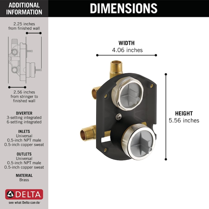 The Delta MultiChoice Integrated Shower Diverter consolidates custom shower design with its consumer-preferred streamlined style eliminating the need for an additional diverter valve. With three popular trim style choices to coordinate with any bathroom décor, it provides you the flexibility to select the type of custom shower functionality you prefer. With the MultiChoice Universal system, you have the freedom to upgrade style and functionality later. And, because there’s no need to alter plumbing behind the wall, you save time, effort and money on future renovation updates.