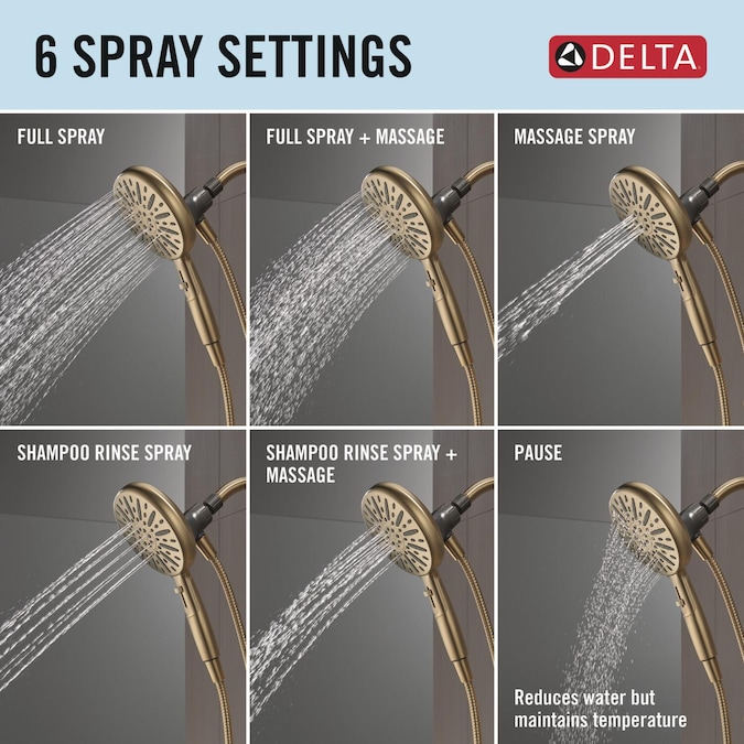 • Spray settings include: Full Body, Full Body + Massage, Massage, Shampoo Rinse, Shampoo Rinse + Massage and Pause