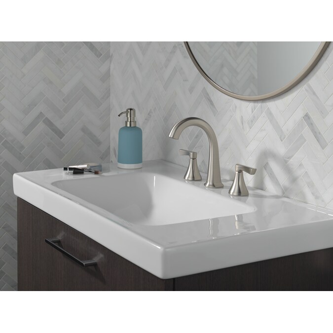 Delta Arcadia Spotshield Brushed Nickel Widespread 2-Handle WaterSense Bathroom Sink Faucet with Drain