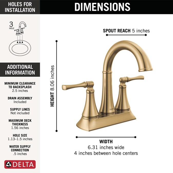 The Archdale™ Bath Collection brings timeless elegance and gentle curves to complement any bath setting. Delta® WaterSense® labeled faucets use at least 20% less water than the industry standard — helping you save water without compromising performance. You can install with confidence, knowing Delta products are backed by our Lifetime Limited Warranty.