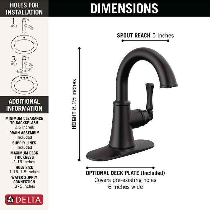 - LIFETIME LIMITED WARRANTY: You can install with confidence, knowing Delta bathroom faucets are backed by our Lifetime Limited Warranty and repair parts