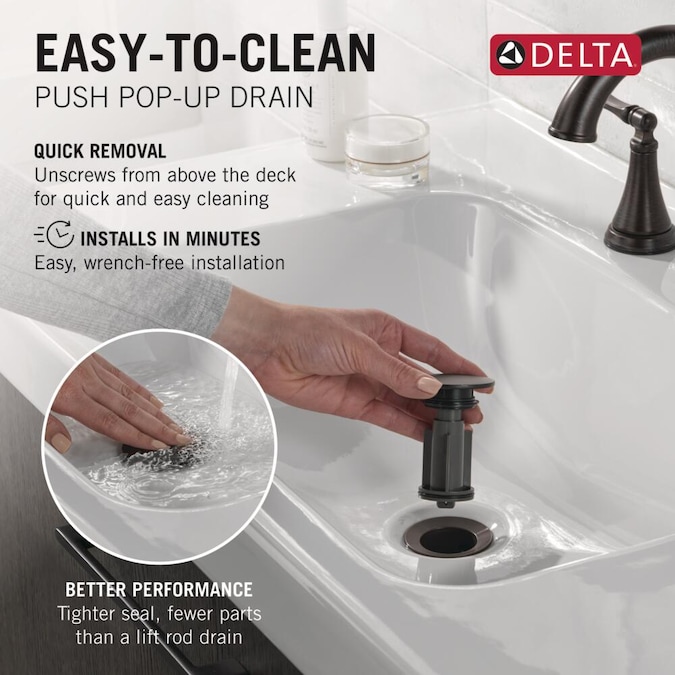 - EASY-TO-CLEAN DRAIN: Push pop-up drain unscrews from above the deck for quick removal and easy cleaning of hair and other bathroom sink debris