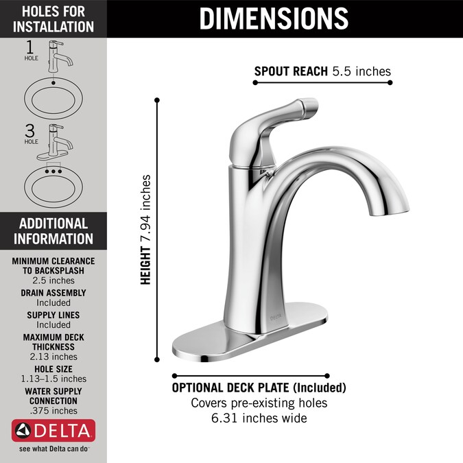 - 1-Hole Sink Compatible: Yes