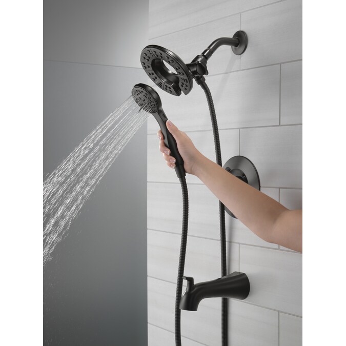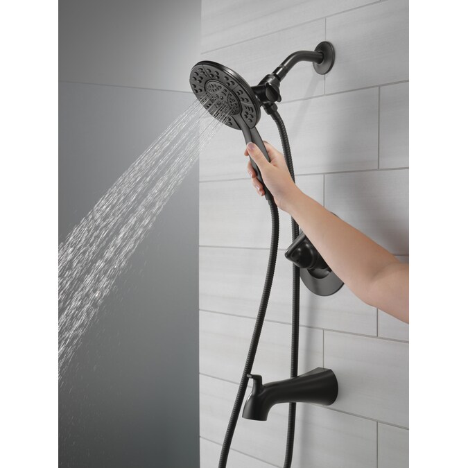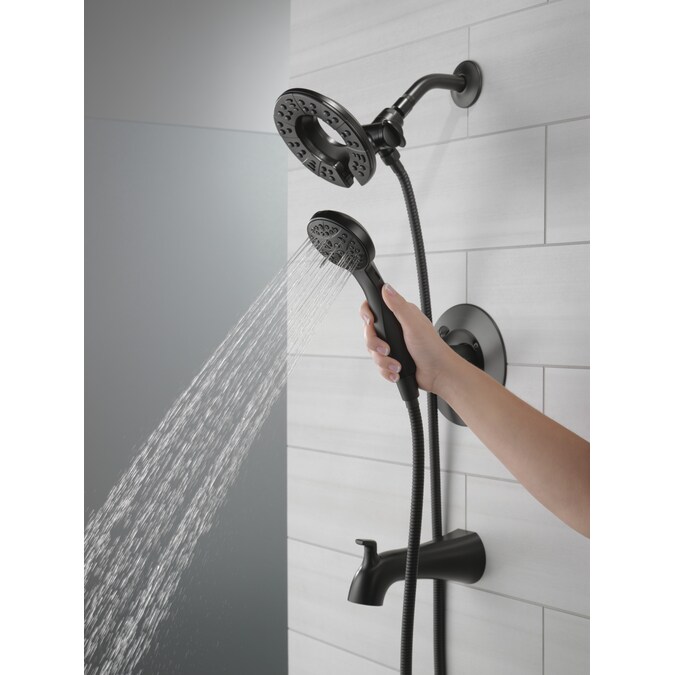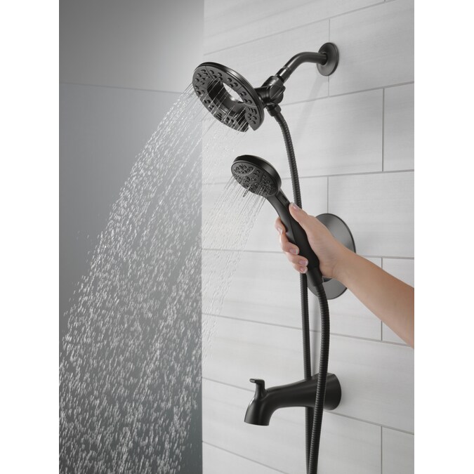 The fluid lines of the Arvo™ Bath Collection bring a delicate, serene look to the bath. The Delta® In2ition® Two-in-One Shower features a detachable hand shower which can be used separately from or simultaneously with the shower head. This integrated dual-functionality gives you maximum flexibility without sacrificing warmth, as you can choose to have water streaming from the shower head only, the hand shower only or both the shower head and hand shower at once. While other products may gather unsightly mineral build-up over time, Delta soft rubber Touch-Clean® spray holes allow any mineral residue to simply be wiped away for an instantly refreshed look – with no need for soaking or the aid of chemical cleaners. The pause setting gives you ample space for shaving, lathering and other shower tasks, then easily restarts the water with the temperature where you left off. This spray setting helps you conserve water, so you can worry less about depleting your supply of hot water – and you help the environment too. Delta WaterSense labeled faucets, showers and toilets use at least 20% less water than the industry standard—saving you money without compromising performance.