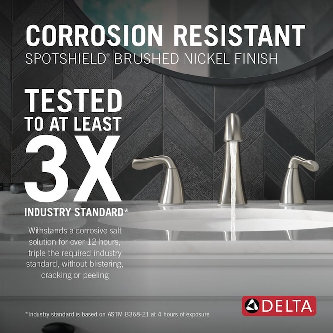 - TESTED AND CERTIFIED: All Delta bathroom faucet finishes are third-party certified and vigorously tested under extreme conditions to ensure years of dependable use without cracking, peeling, chipping, blistering or changing color over time