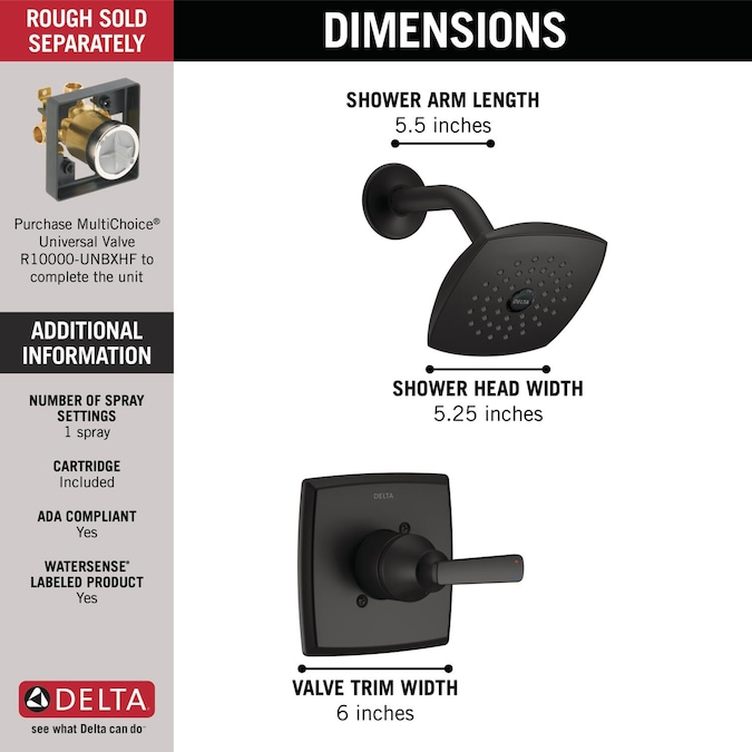 The sleek, angular lines and soft edges of the Ashlyn™ bath collection create a modern appeal at an attractive price. While other products may gather unsightly mineral build-up over time, Delta soft rubber Touch-Clean® spray holes allow any mineral residue to simply be wiped away for an instantly refreshed look – with no need for soaking or the aid of chemical cleaners. Delta® pressure-balance valves use Monitor® Technology to protect you and your family from sudden temperature changes. Delta WaterSense labeled faucets, showers and toilets use at least 20% less water than the industry standard—saving you money without compromising performance.