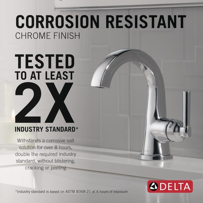 - CORROSION-RESISTANT FINISH: DeltaChrome bathroom faucet finish is intentionally engineered for durability and tested for corrosion resistance to at least 2 times industry standards