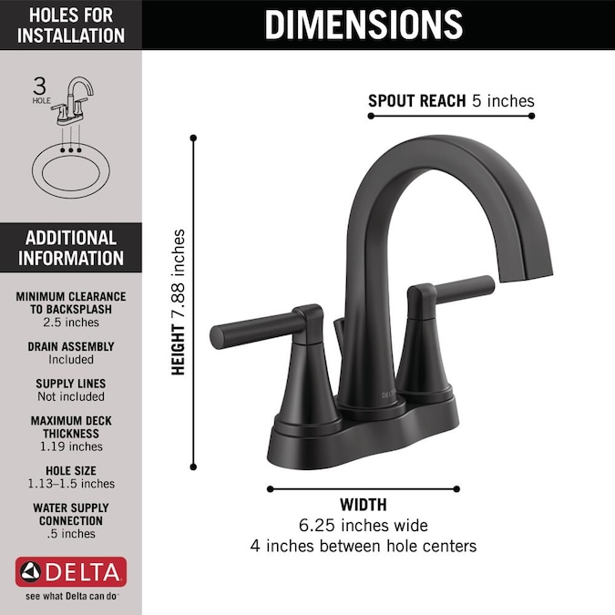 - LIFETIME LIMITED WARRANTY: You can install with confidence, knowing Delta bathroom faucets are backed by our Lifetime Limited Warranty and repair parts