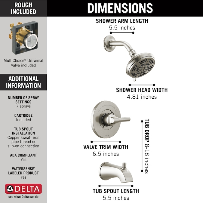 The pause setting gives you ample space for shaving, lathering and other shower tasks, then easily restarts the water with the temperature where you left off. This spray setting helps you conserve water, so you can worry less about depleting your supply of hot water – and you help the environment too. Delta pressure-balance valves use Monitor Technology to protect you and your family from sudden temperature changes. Delta WaterSense labeled faucets, showers and toilets use at least 20% less water than the industry standard—saving you money without compromising performance.
