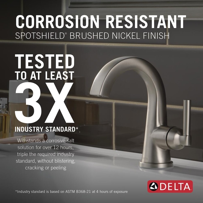 - TESTED AND CERTIFIED: All Deltabathroom faucet finishes are third-party certified and vigorously tested under extreme conditions to ensure years of dependable use without cracking, peeling, chipping, blistering or changing color over time