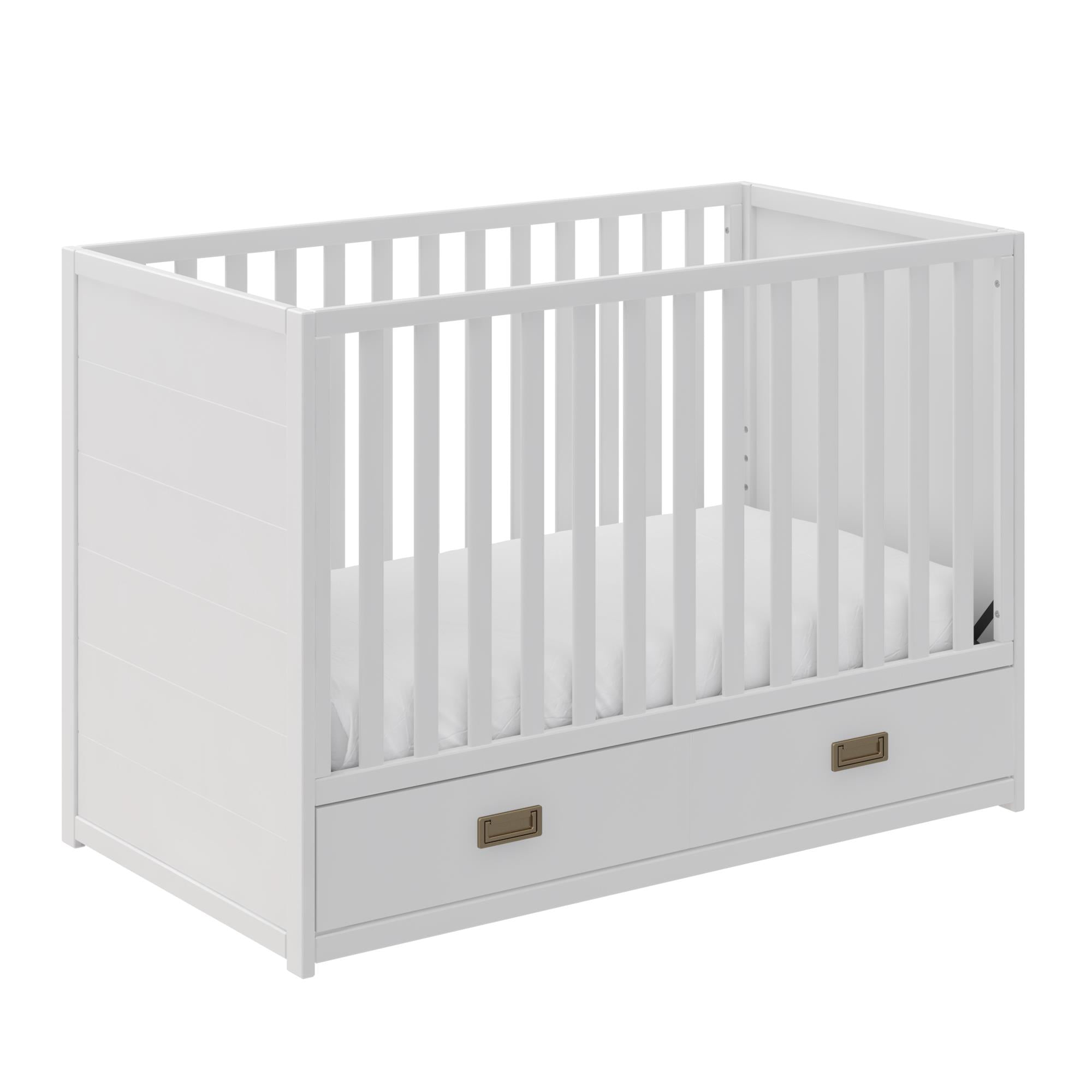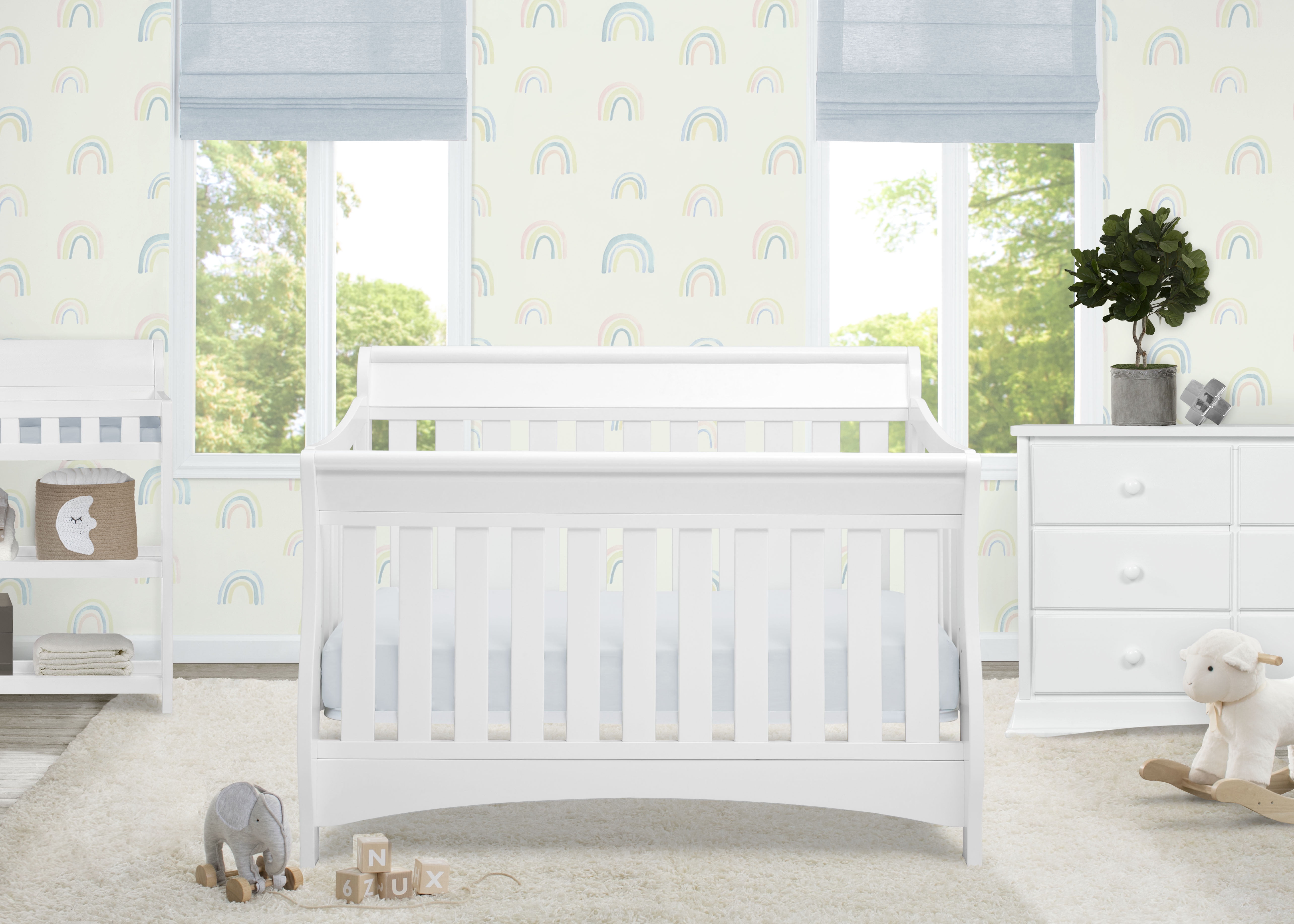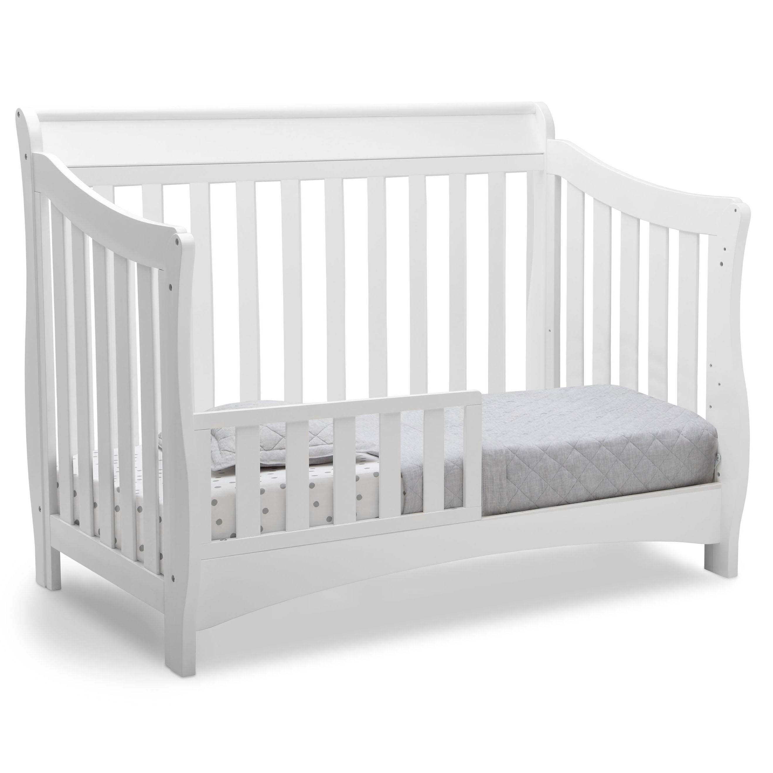 “The Bentley S Series 4-in-1 sleigh crib is the perfect spot to lay your sweet baby down to sleep. Made of solid hardwood, this beautiful crib has a sleigh design with clean lines and simple details. You’ll love the way this sleigh-style crib looks in your nursery. With its 3 mattress height positions, you can choose the right level for your child, higher positions for your newborn and lower positions as your baby develops into a toddler. Its rounded edges keep both Mom and baby safe from accidental bumps. Plus, this 4-in-1 convertible crib can grow with your child all the way into their teenage years. The Bentley sleigh crib transforms from a crib into a toddler bed, daybed and full-sized bed. Transitional in style, it’s a great piece to design your little one’s nursery around. You’ll be glad you invested in a piece of quality furniture with timeless features. Pair the Bentley S Series 4-in-1 convertible sleigh crib with other pieces from the Bentley S Series collection to complete your nursery. Toddler guard rails and full size bed rails sold separately.” GREENGUARD GOLD CERTIFIED: This Convertible Crib meets the most stringent chemical emissions standards to create a healthier home for your child. Tested for more than 10,000 chemicals and VOCs, this crib is certified to contribute to cleaner indoor air GREENGUARD GOLD CERTIFIED: This Convertible Crib meets the most stringent chemical emissions standards to create a healthier home for your child. Tested for more than 10,000 chemicals and VOCs, this crib is certified to contribute to cleaner indoor air