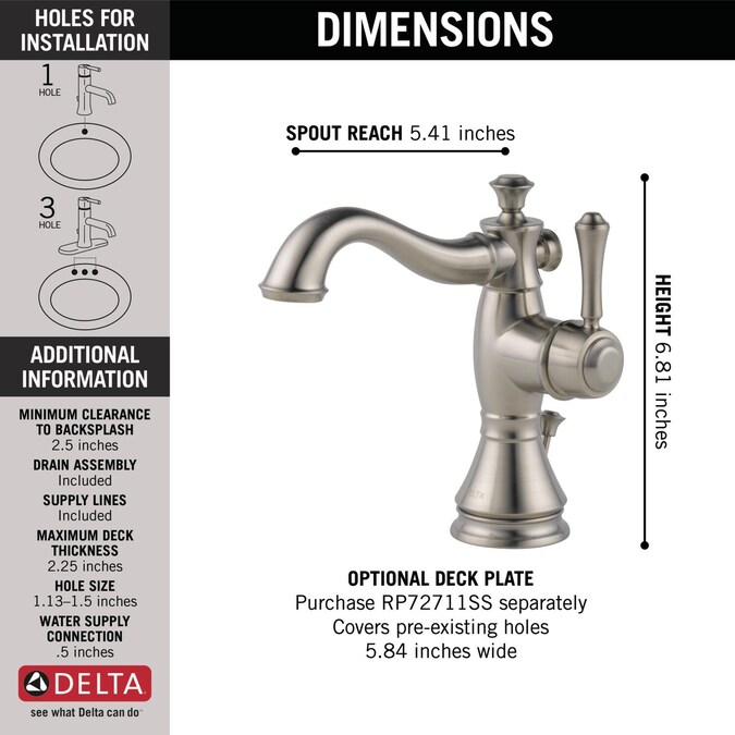 - Optional 5-27/32 in. deck plate available for 3-hole installations (RP72711CZ)