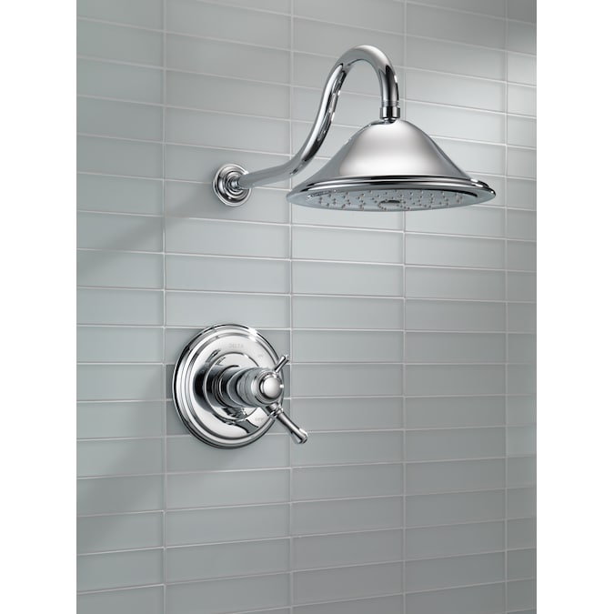 With separate handles for volume and temperature control, this Delta tub/shower provides a more refined showering experience. Simply set the water at your preferred temperature and turn the shower on or off with the volume control handle – without interrupting your set temperature. While other products may gather unsightly mineral build-up over time, Delta soft rubber Touch-Clean® spray holes allow any mineral residue to simply be wiped away for an instantly refreshed look – with no need for soaking or the aid of chemical cleaners. Delta® thermostatic valves use TempAssure® Technology to protect you and your family from sudden temperature changes. Chrome has rapidly become one of the most popular finishes across décor styles in the bath thanks to its stunning gloss and innate versatility. Paired with crisp lines and bright whites, it creates a bold, modern contrast, but it works equally well with vintage styles and traditional spaces to convey a hint of nostalgia.