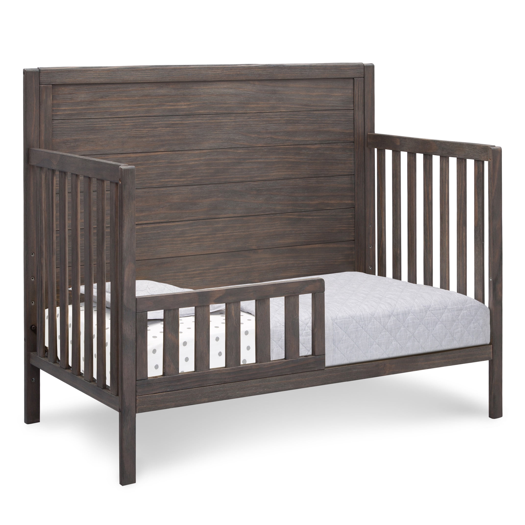 Delta Children Cambridge Mix and Match 4-in-1 Convertible Crib – Rustic Gray: Converts to toddler bed, daybed and full size bed Daybed Rail included Toddler guardrail #701725 and full-size bed frame #0040 sold separately Available in soft textured finishes: Rustic Bianca, Rustic Ebony, Rustic Haze, Rustic Grey or Oak; mix and match colors any way that you like Delta 4-in-1 crib coordinates with the Cambridge 3-drawer dresser and 4-drawer chest Crafted with care by Delta Children, easily assembled by you Adjustable height mattress support with 3 convenient positions to grow with your baby Assembled dimensions: 55″L x 29.5″W x 46.25″H Uses a standard size crib mattress (sold separately) JPMA Certified to meet or exceed all safety standards set by the CPSC and ASTM Tested for lead and other toxic elements to meet or exceed government and ASTM safety standards