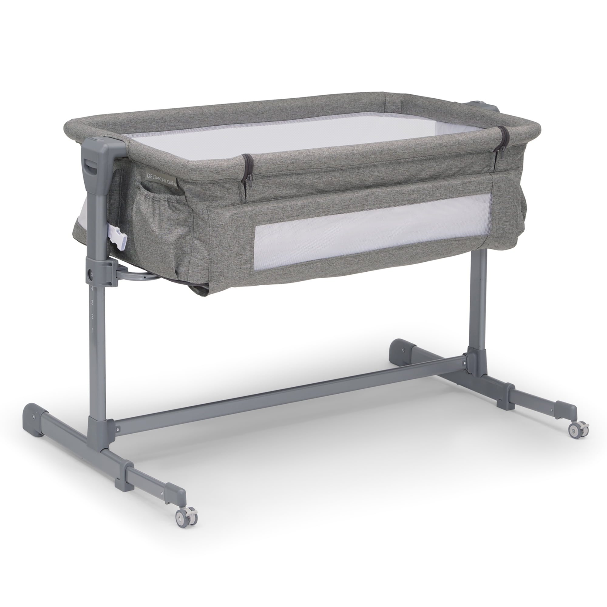Delta Children Close2Me Bedside Baby Bassinet Sleeper with Breathable Mesh and Adjustable Heights – Lightweight Portable Crib, Grey