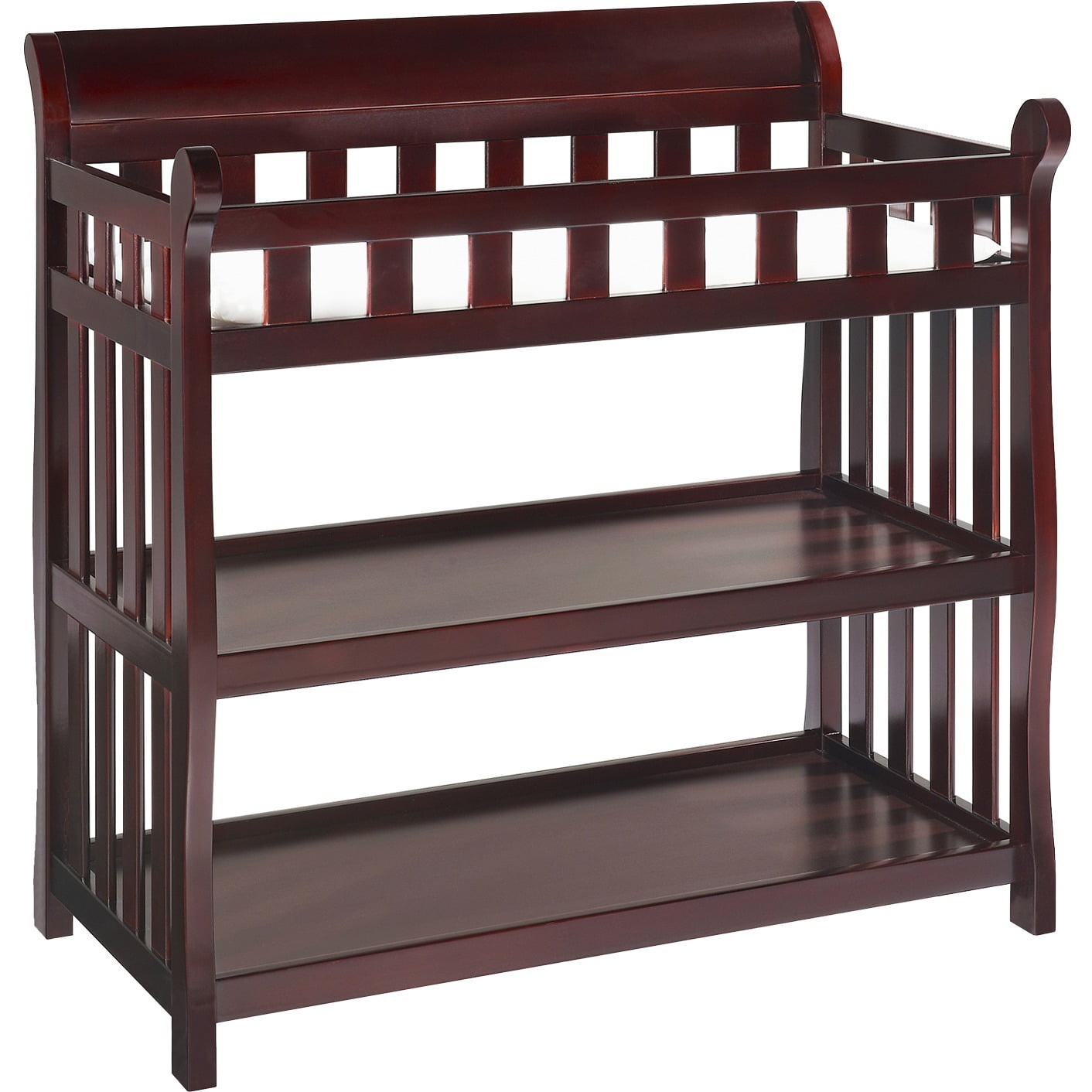 Contains 2 shelves, safety belt, top safety rails, changing pad Includes changing pad Wipe clean with a damp cloth JPMA certified. Wood construction, has a non-toxic finish Some assembly is required A safe and secure place to change Baby with all changing supplies close by Pair this changing table with any number of Delta Children pieces in matching colors, to complete your Baby’s nursery Safety rail on all 4 sides
