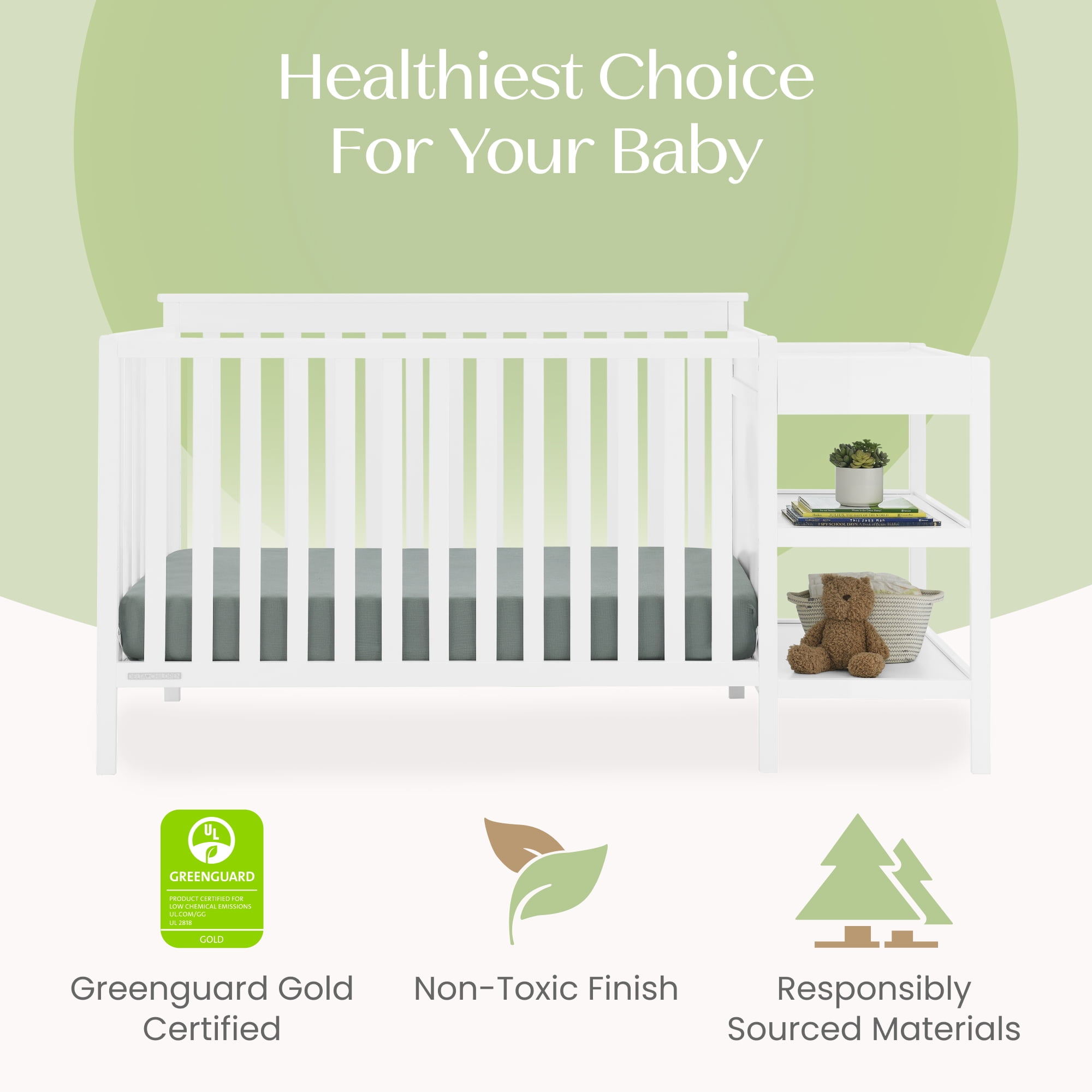Delta Children Ellie 5-in-1 Convertible Crib and Changer – Greenguard Gold Certified, Bianca White