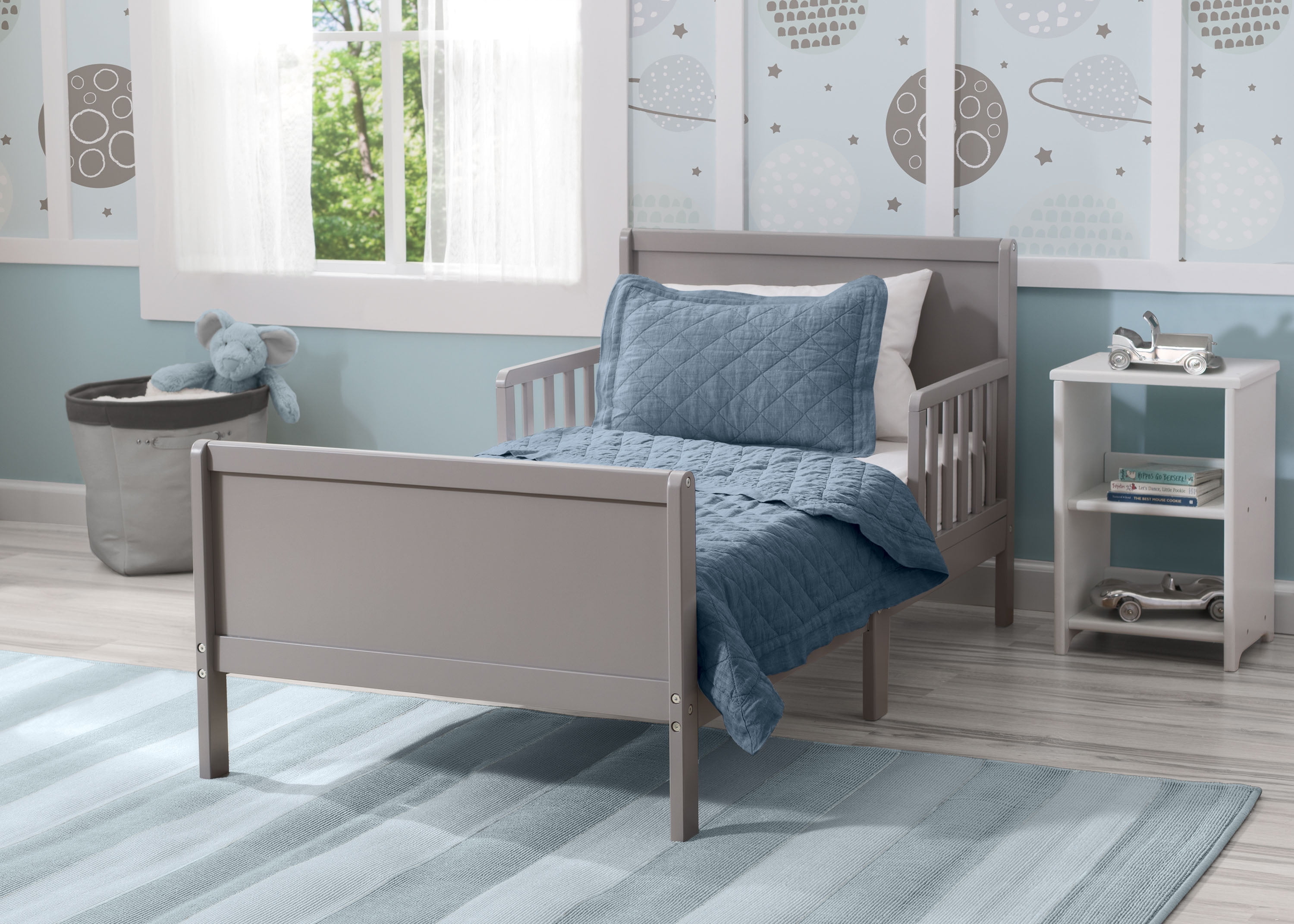The Epic Wood Toddler Bed with Attached Guardrails from Delta Children helps make the transition from baby crib to big-kid bed easy. Full of timeless style, this durable wood toddler bed features straight lines and an easy-to-coordinate finish in the perfect scaled down size for little kids. Attached guardrails and low height create a secure sleep environment that gives you peace of mind and your growing the child the independence they crave. Delta Children was founded around the idea of making safe, high-quality children’s furniture affordable for all families. They know there’s nothing more important than safety when it comes to your child’s space. That’s why all Delta Children products are built with long-lasting materials to ensure they stand up to years of jumping and playing. Plus, they are rigorously tested to meet or exceed all industry safety standards.