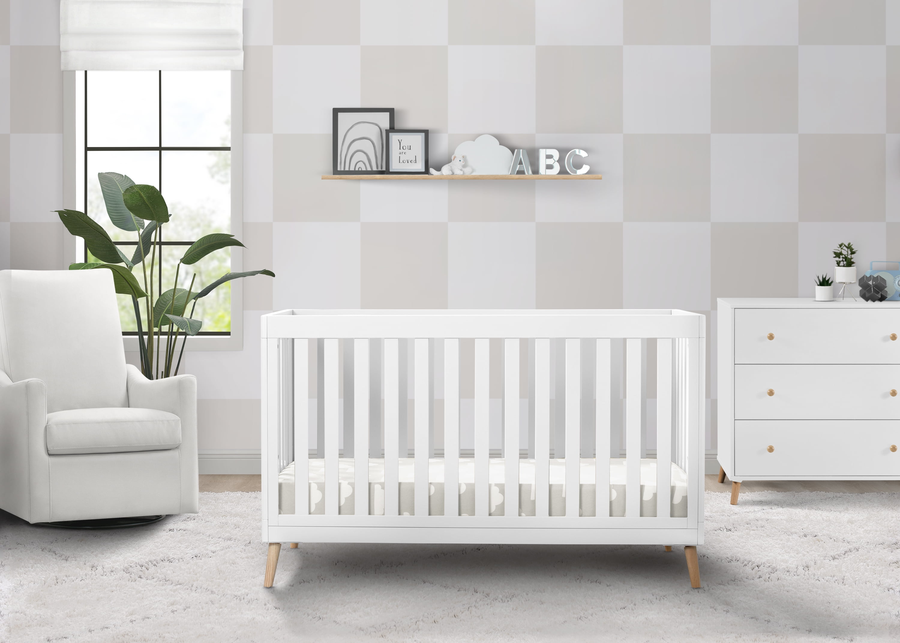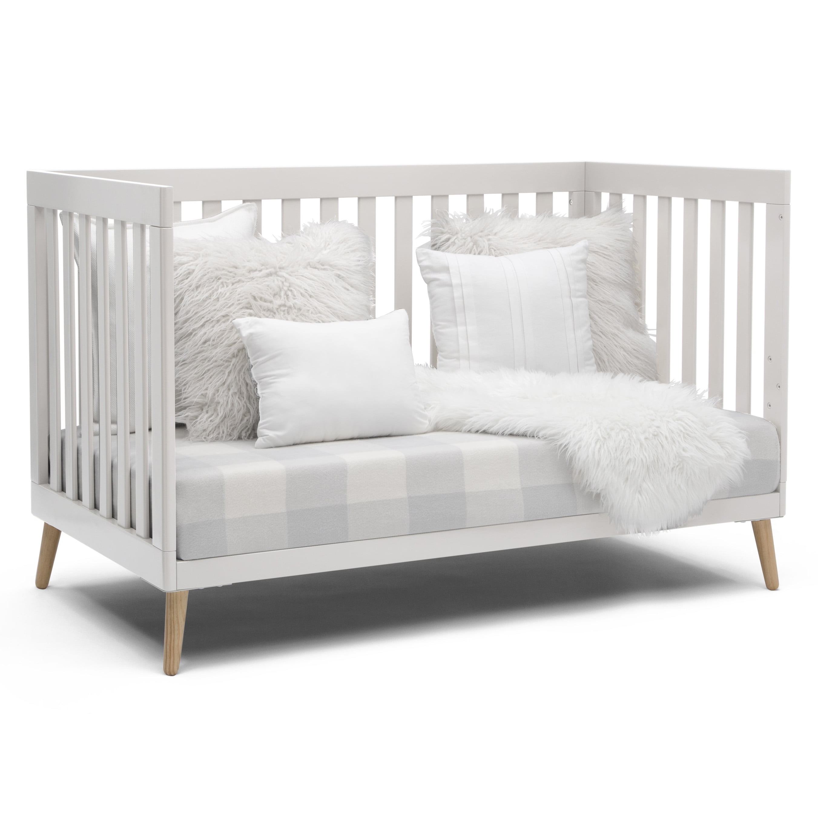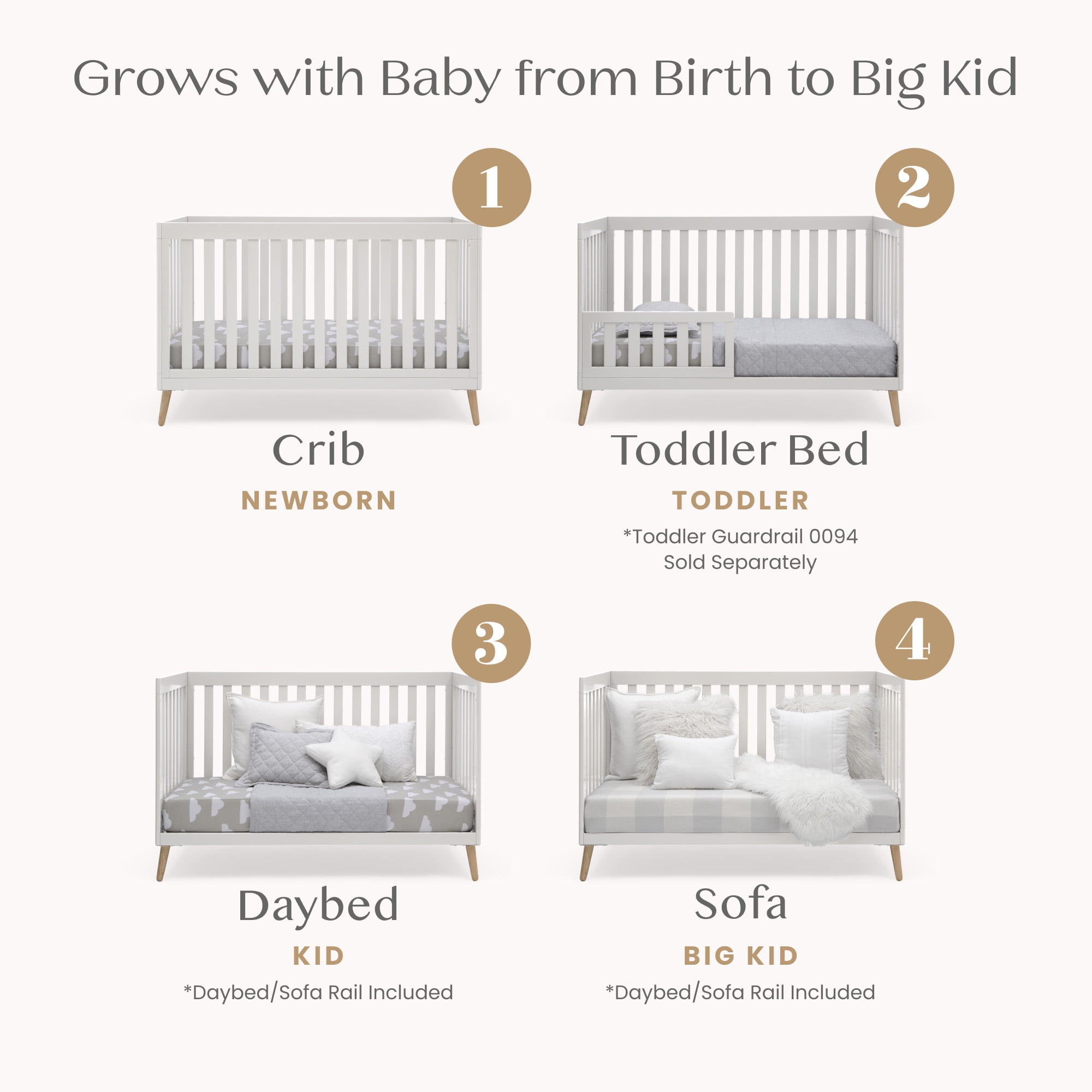 Delta Children Essex 4-in-1 Convertible Baby Crib, Bianca White/Natural Legs