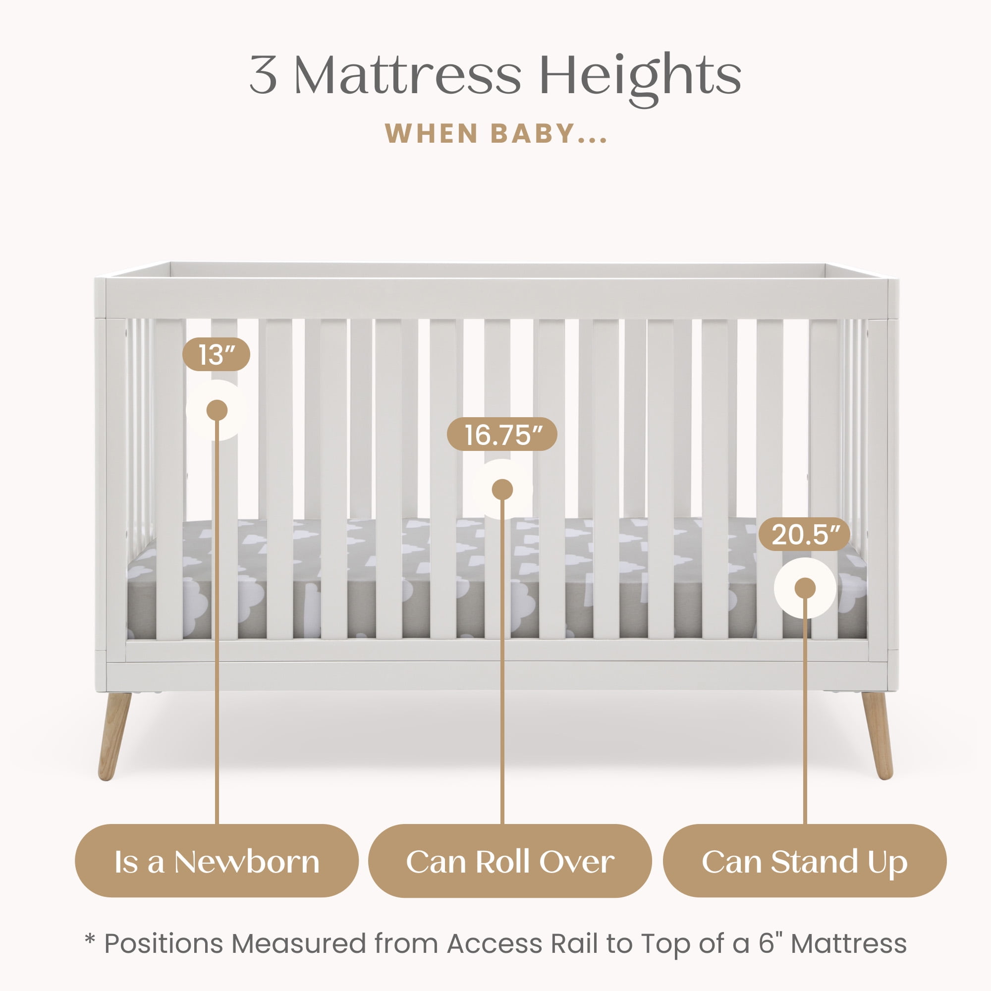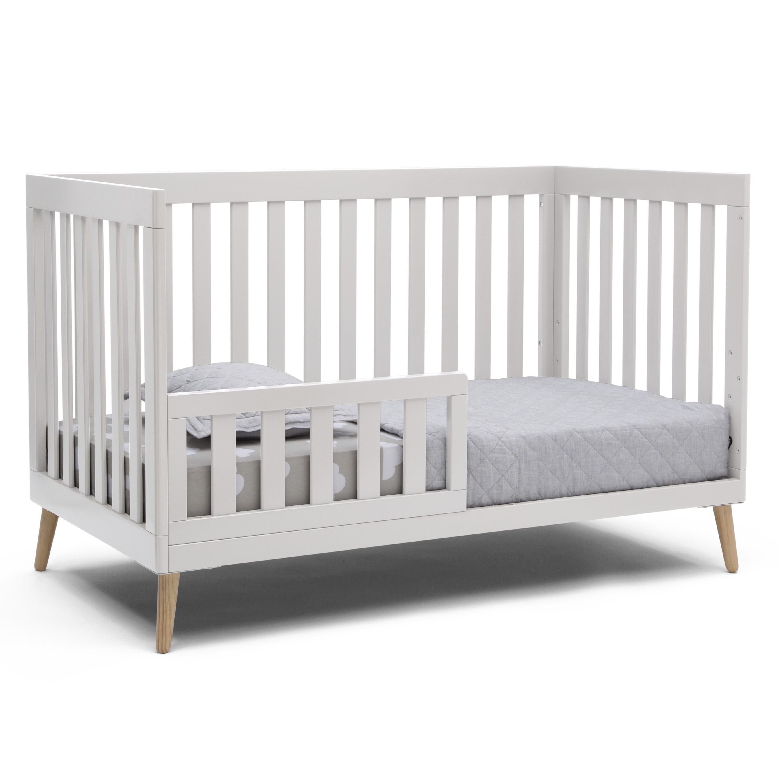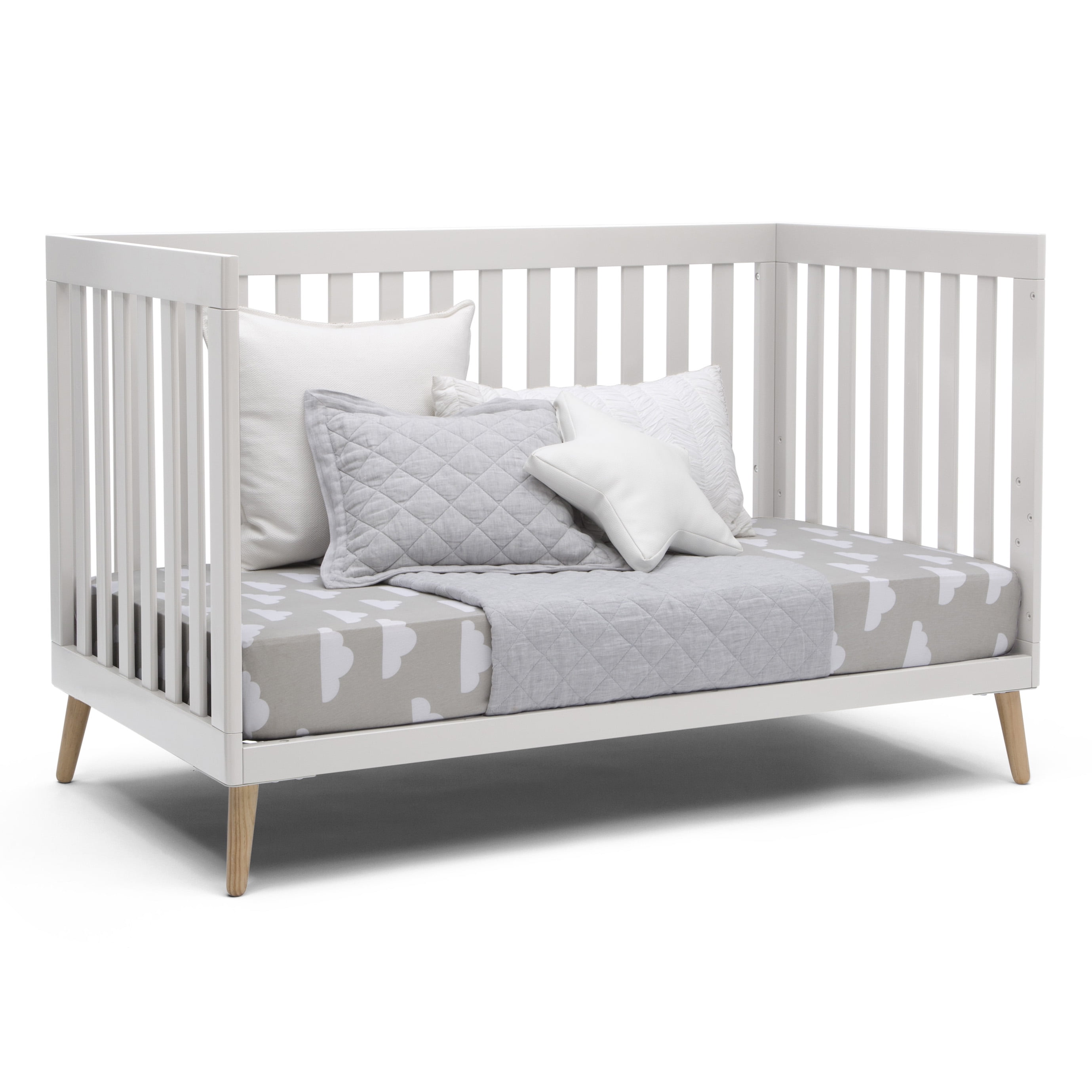 GROWS WITH BABY: Crib converts to a toddler bed, daybed and sofa (Daybed/Sofa Rail included; Toddler Guardrail #0094 sold separately) | Crib features stylish angled legs in solid pine with a natural finish ADJUSTABLE HEIGHT: Adjustable height mattress support with 3 convenient positions to grow with your baby COORDINATING ITEMS: Add the Delta Children Under Crib Roll-Out Storage #W100950 for extra storage | Uses a standard size crib mattress (sold separately), to ensure the perfect fit pair your crib with a Delta Children, Serta or Beautyrest crib mattress SIZE: Assembled Dimensions: 54″”L x 29.50″”D x 34″”H | Easy to assemble WE PUT YOUR BABY’S SAFETY FIRST: JPMA Certified to meet or exceed all safety standards set by the CPSC & ASTM | Tested for lead and other toxic elements to meet or exceed government and ASTM safety standards