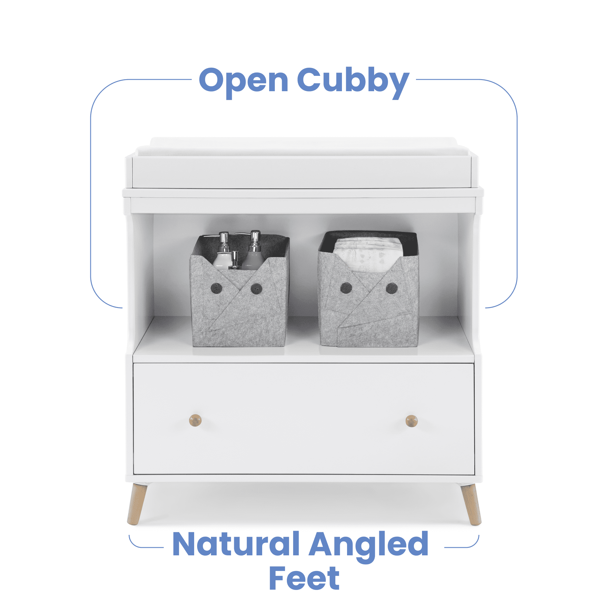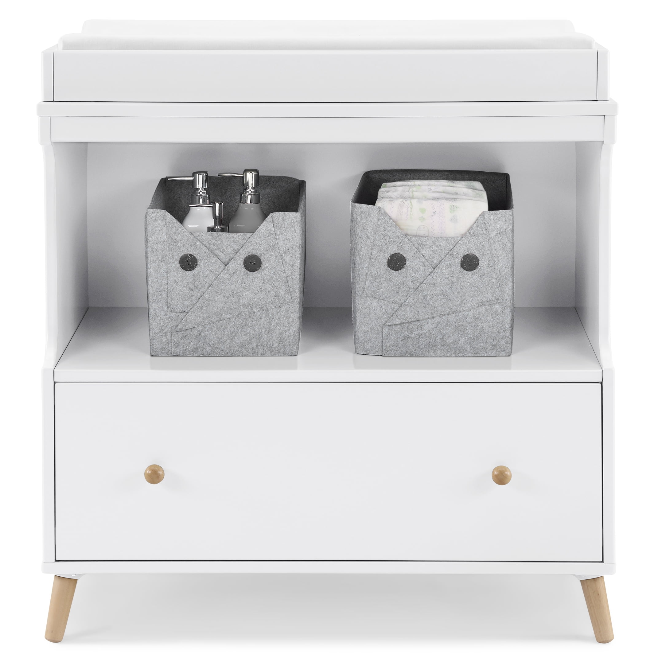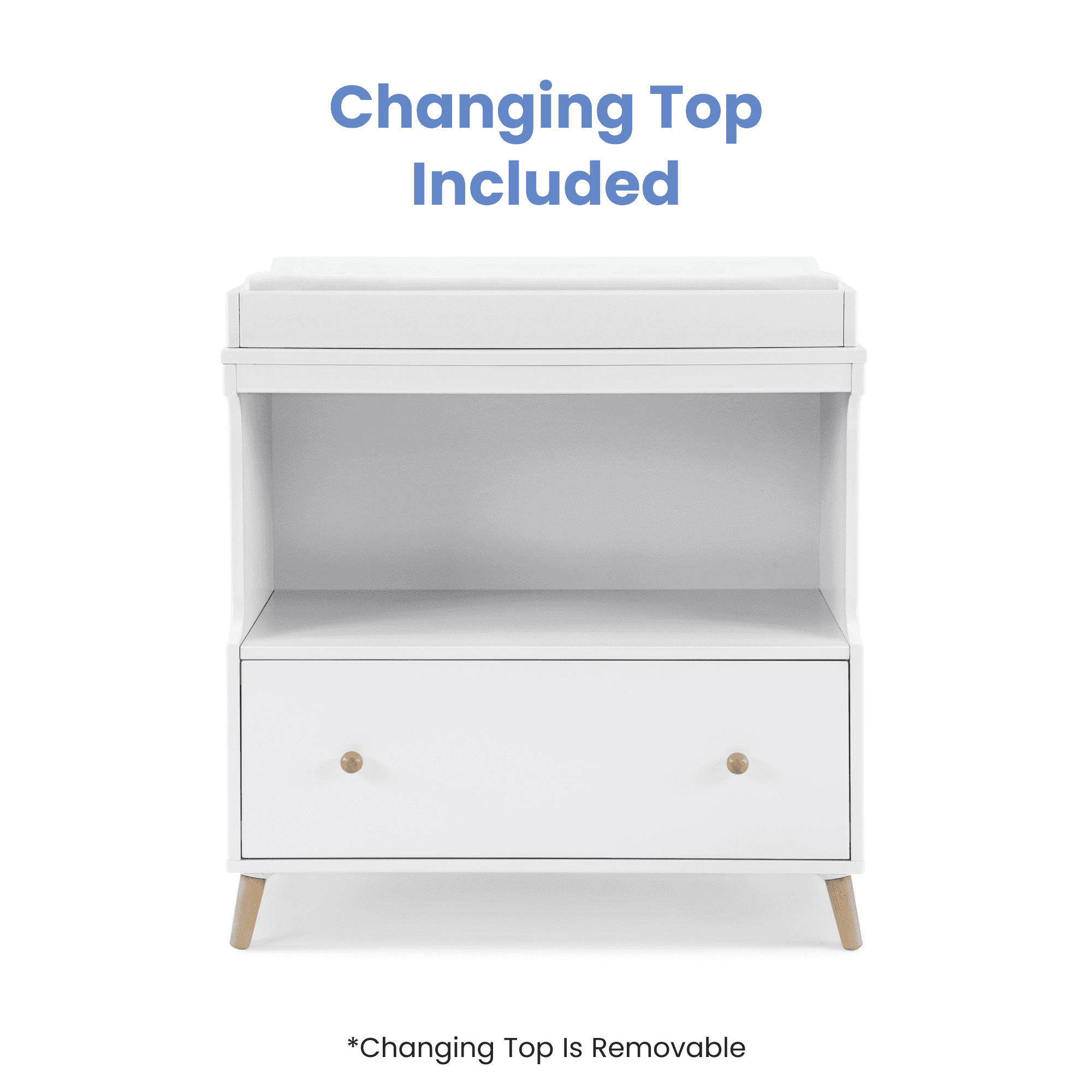 Delta Children Essex Convertible Changing Table with Drawer, Greenguard Gold Certified, Bianca White/Natural