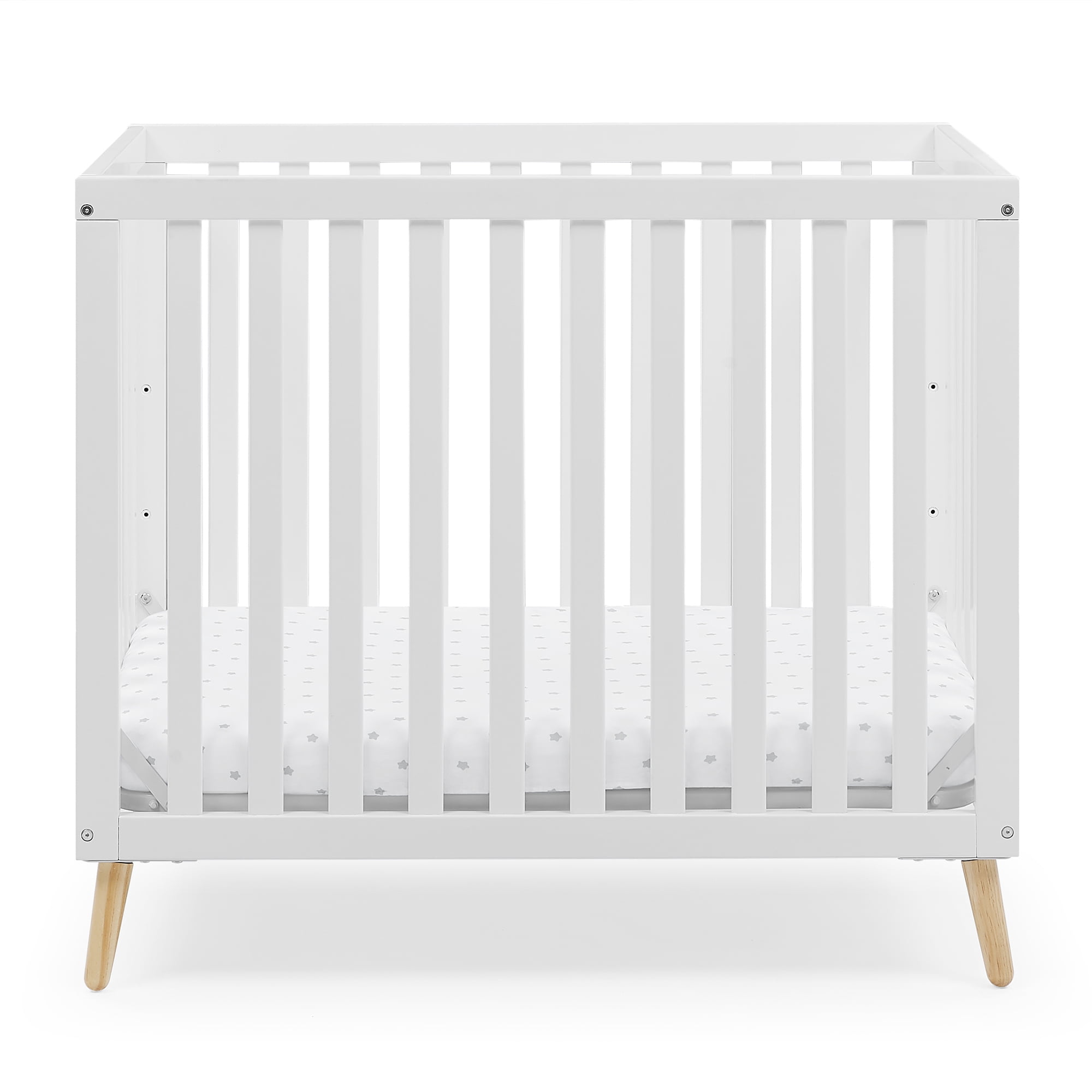 Delta Children Essex Convertible Mini Baby Crib with 2.75-Inch Mattress, Bianca White/Natural