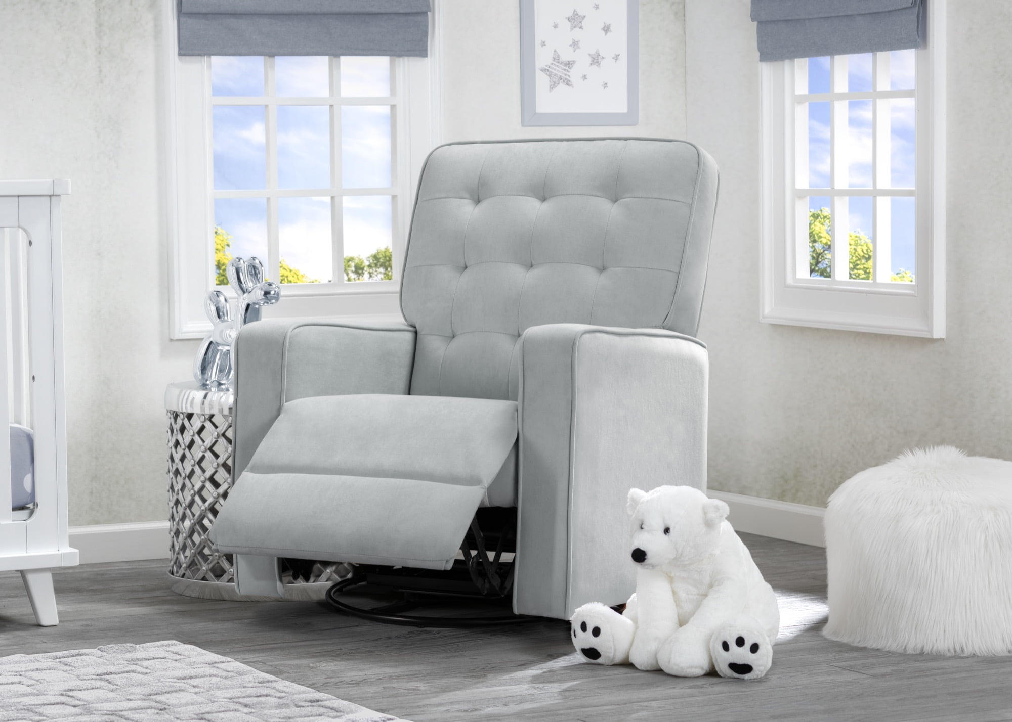 The Delta Children Graham Nursery Glider Swivel Recliner Featuring LiveSmart Fabric by Culp in Mist allows you and your baby to recline, rock and relax with ease. A great seating option for the nursery, it features a 360-degree swivel, gliding motion, and an easy-to-reach reclining mechanism that offers two recline positions. You can keep the seat upright and just prop up your legs or fully recline for maximum relaxation. Upholstered in the most durable fabric on the market, this recliner features LiveSmart technology, which allows spills to bead up, sitting on top of the fabric until you gently blot them away. The stain-resistant fabric is designed to keep your chair fresh and new looking for years to come, the LiveSmart fabric resists everyday messes by preventing stains and repelling moisture. Move this versatile recliner to any other living space in your house once your child as outgrown their nursery-its sophisticated design with buttonless tufting and streamlined silhouette makes it a timeless choice. The Delta Children Graham Nursery Glider Swivel Recliner featuring LiveSmart Fabric by Culp is available in a number of versatile neutrals that work well with everything.