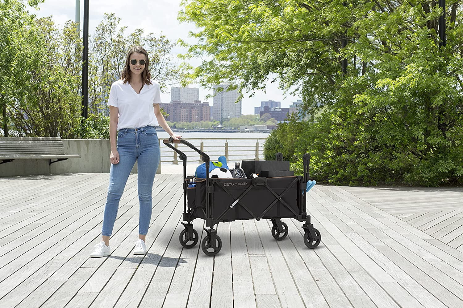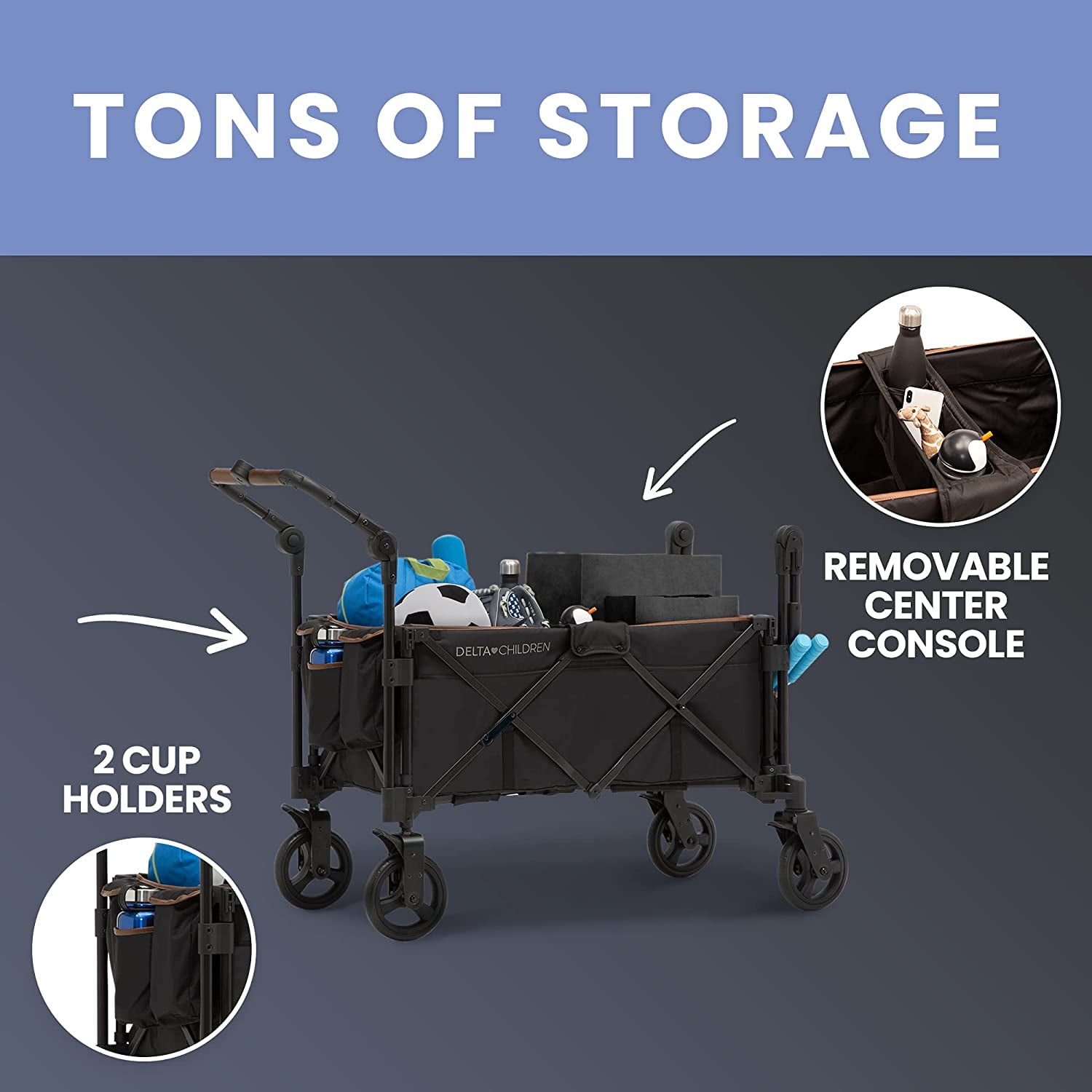 Delta Children Hercules Stroller Wagon for 2 Kids Versatile Stroller Wagon with Canopy, Push/Pull Handles, Cup Holders and Storage Pockets Compact Fold is Great for Travel, Black