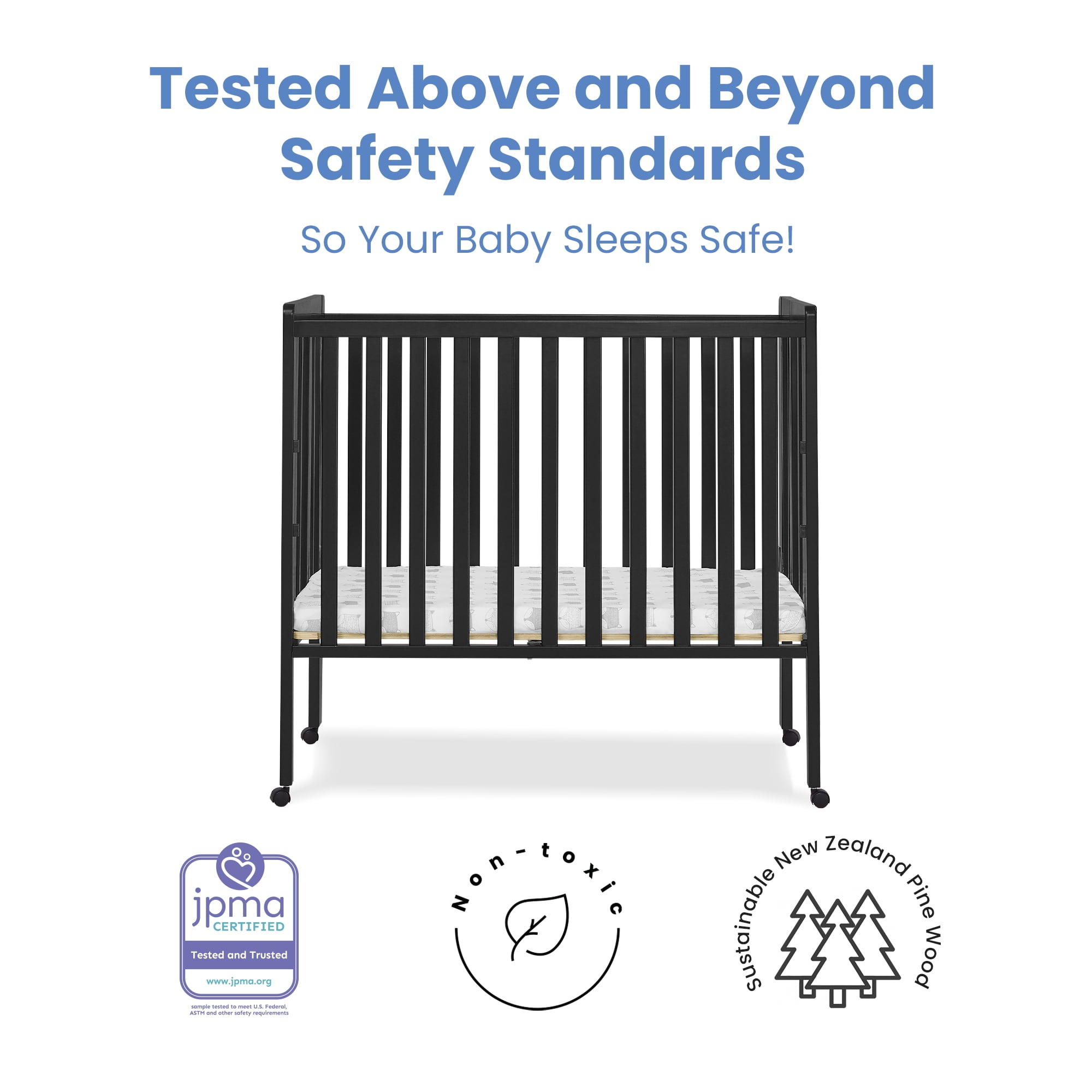 Delta Children Lee Portable Folding Mini Crib with 1.5-Inch Mattress – Greenguard Gold Certified, Black