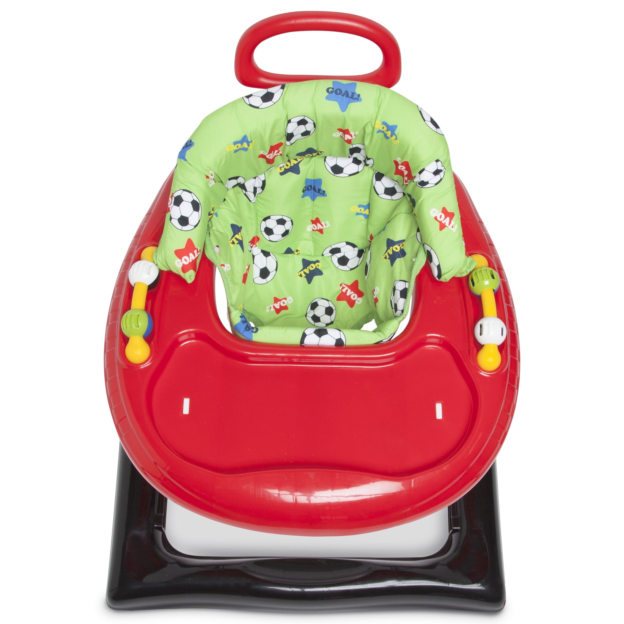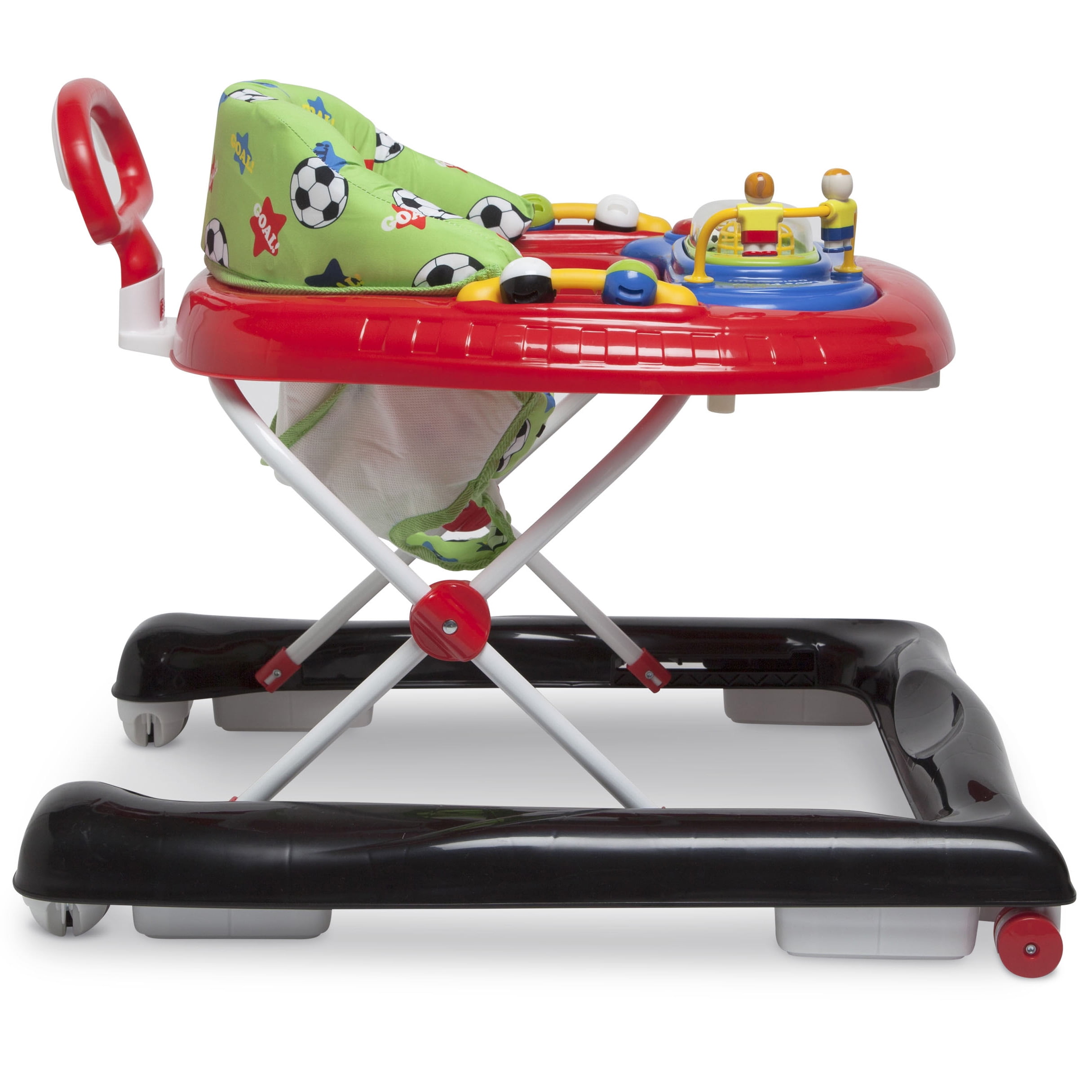 Motivate baby to reach all their goals, on and off the field, with the Lil Goal Keeper 2-in-1 Walker from Delta Children! From bringing action-packed fun to playtime, to inspiring learning and exploration, this activity walker and entertainer is the perfect choice for your growing child. Its 2-in-1 design converts from an activity walker, to a walk-behind walker, adapting to baby’s development as they start taking their first steps. As an activity walker, baby will enjoy engaging with all of the interactive features from the comfort of the walker’s cushioned, high back chair, including bead toys and a soccer game with moving ball that works by pushing the bubble in the middle of the toy tray. In the walk-behind mode, the walker’s easy-to-grasp handle offers additional support as your child begins to walk on their own. The removable toy tray enables baby to take the soccer game with them, anywhere, and also provides space for snack or meal time when removed from the walker. A great baby gift idea, this walker’s three-position height adjustment offers baby the ideal support as they grow and its compact construction allows for easy storage and transport, perfect for taking on trips. Delta Children was founded around the idea of making safe, high-quality children’s furniture affordable for all families. They know there’s nothing more important than safety when it comes to your child’s space. That’s why all Delta Children products are built with long-lasting materials to ensure they stand up to years of jumping and playing. Plus, they are rigorously tested to meet or exceed all industry safety standards.