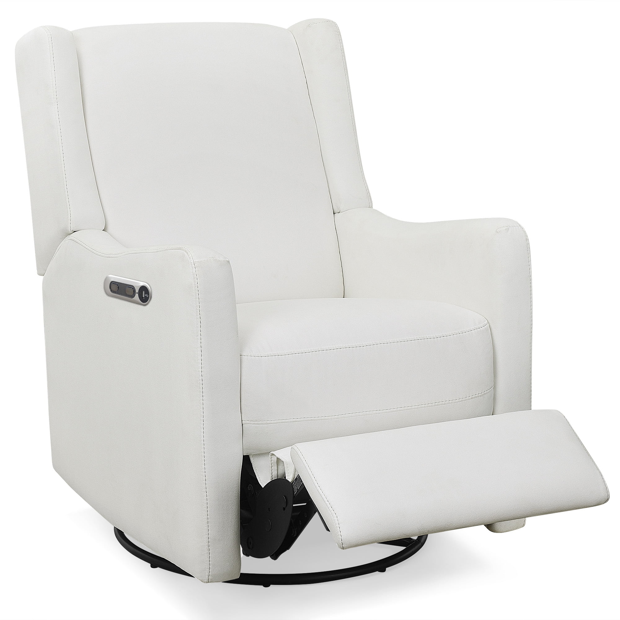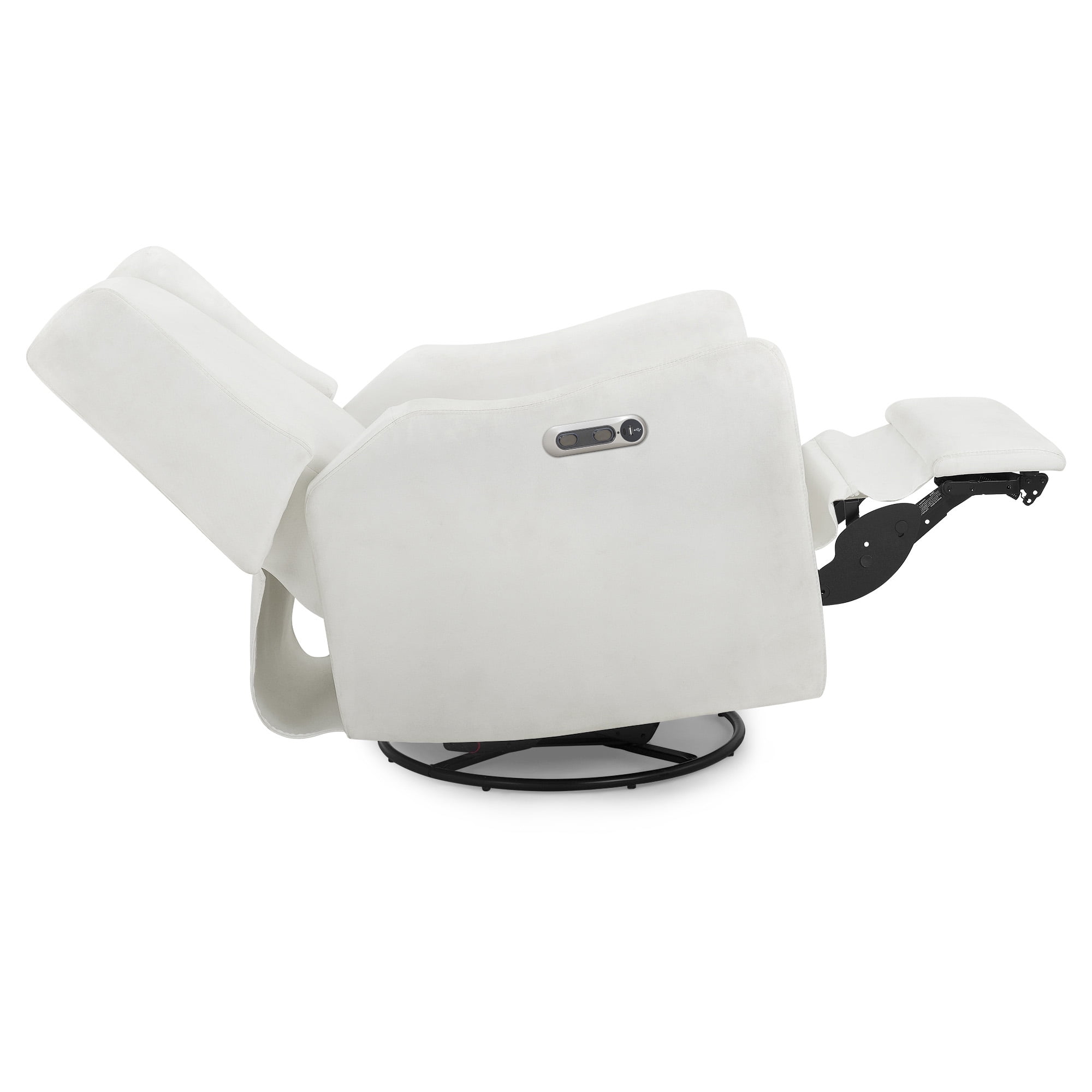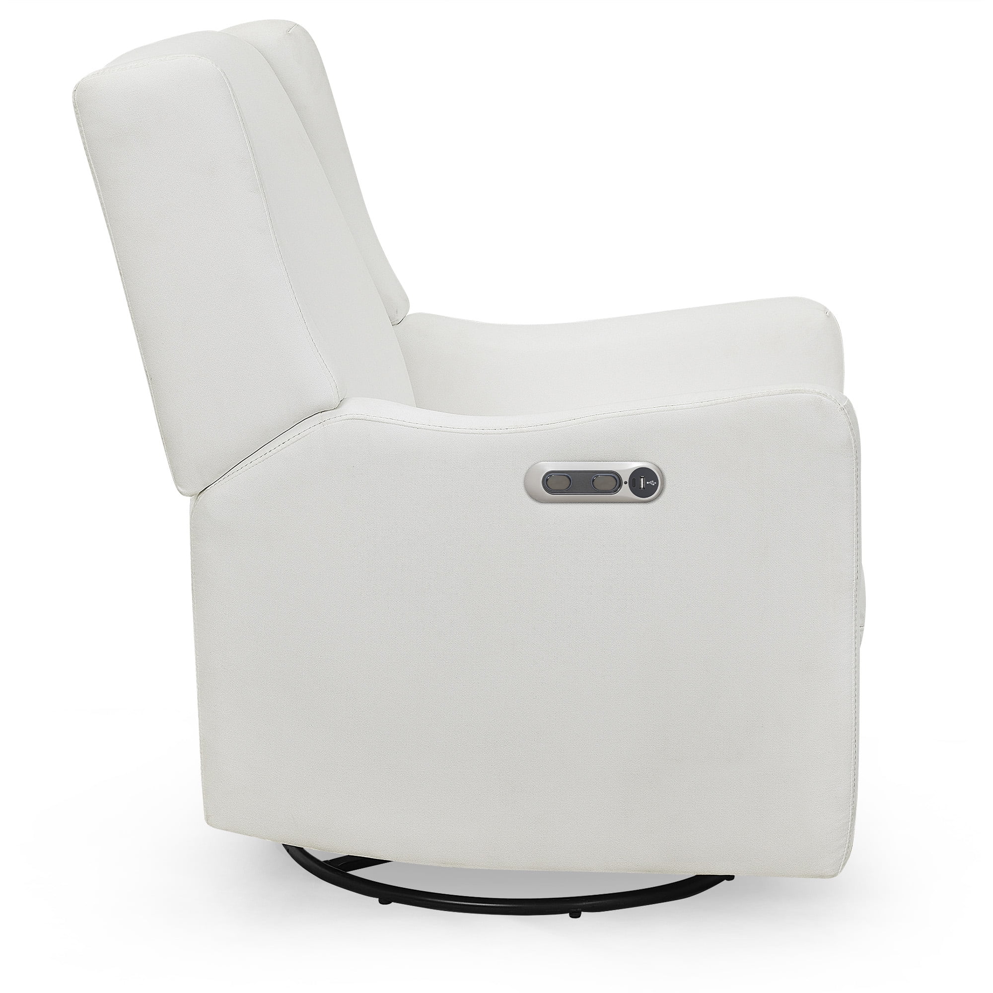 The Mercer Electronic Power Recliner and Swivel Glider by Delta Children combines contemporary design and supreme comfort. Its deep seat, supportive cushion, padded armrests and sturdy wood frame creates a relaxing spot where you and your baby can bond for years to come. The seat glides and reclines to multiple positions, and it offers plenty of shoulder and elbow room for comfortable feeding and snuggling. On the side of the chair, you’ll find buttons that allow you to control the recline, plus USB and Type-C ports, so your electronics are always fully charged. Designed for ease, the placement of these buttons and port are more conveniently placed than other recliners on the market! And the recliner swivels 240-degrees with a smooth gliding motion, so you won’t disrupt your little one’s sleep while you get comfortable. Incredibly easy to keep clean, this recliner is upholstered in performance LiveSmart fabric that repels liquid and is stain resistant. The Mercer Electronic Power Recliner and Swivel Glider by Delta Children is the ultimate nursery recliner for modern families.