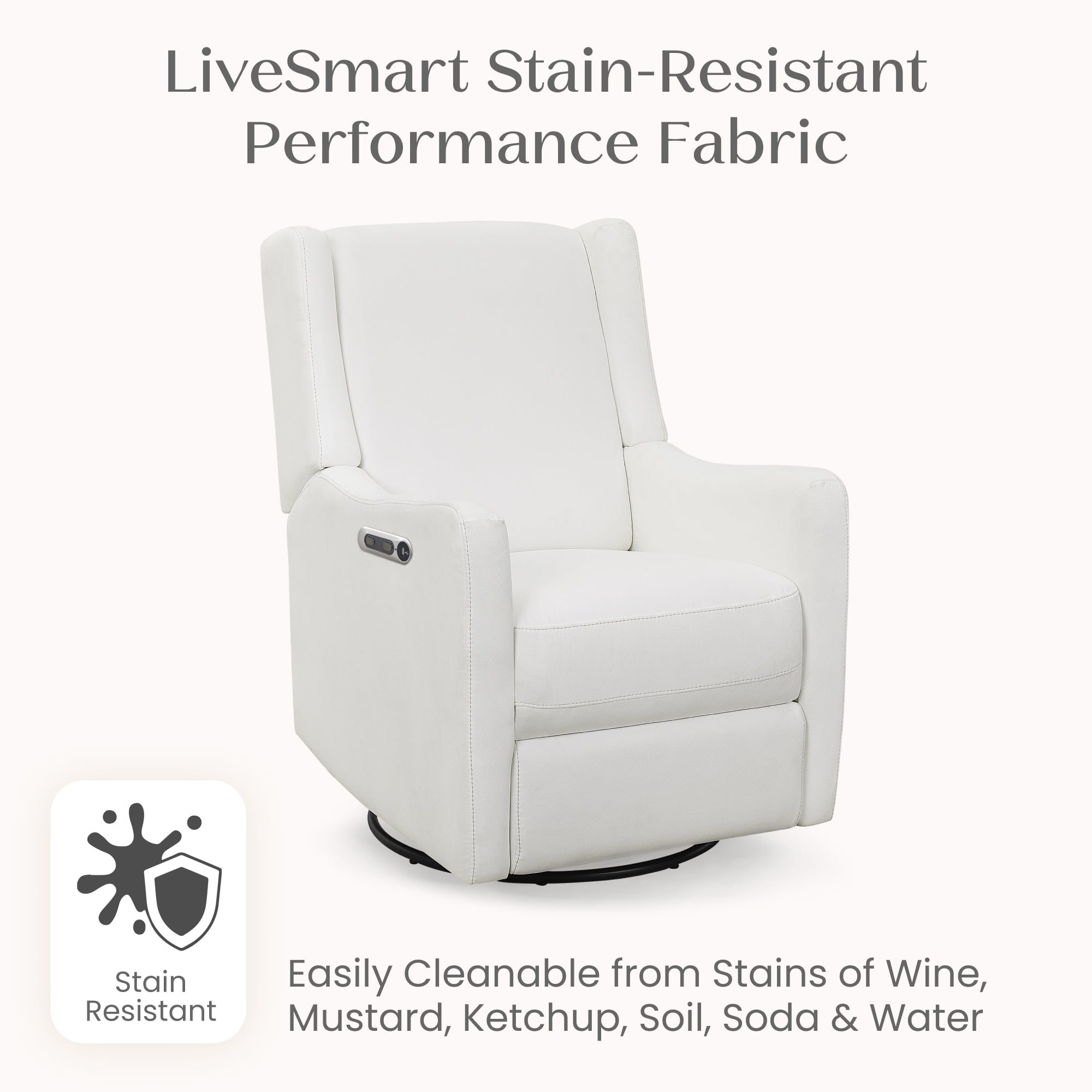 Delta Children Mercer Electronic Power Recliner and Swivel Glider with USB and Type-C Ports in LiveSmart Performance Fabric – Water Repellent & Stain Resistant, Pearl