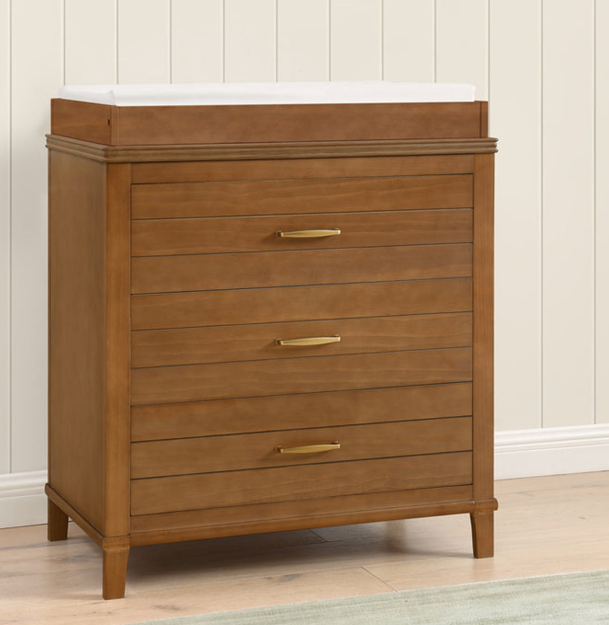 VERSATILE STORAGE: This dresser features 3 drawers for plenty of storage space | To convert this dresser to a convenient changing table use #W100810 Changing Top for Bianca White color only (changing top and changing pad sold separately) INTERLOCKING DRAWERS: Interlocking drawer system limits the number of drawers that can be opened at one time | Tested to meet the current requirements of ASTM F2057, the mandatory CPSC safety standard that protects children from tip-over incidents SAFE OPTION: Dresser includes tipover restraint (safety anchor) for you to securely attach it to your wall | JPMA Certified to meet or exceed all safety standards, set by the CPSC & ASTM | Non-toxic multi-step painting process is lead and phthalate safe COORDINATING ITEMS: The Phoebe 3 Drawer Dresser with Changing Top coordinates with the Delta Children Phoebe 6-in-1 Convertible Crib | Available in Chestnut and Bianca White | A timeless choice for the nursery or kids’ bedroom QUALITY MATERIAL: Made of sustainable materials like New Zealand Pine and TSCA compliant engineered wood | Tested for lead and other toxic elements to meet or exceed government and ASTM safety standards | Durable and easy to clean finish; wipe with damp cloth and dry immediately SIZE: Assembled dimensions: 35″W x 19.5″D x 36″H | Interior Drawer Size: 28″W x 13.5″D x 5.75″H | Easy assembly