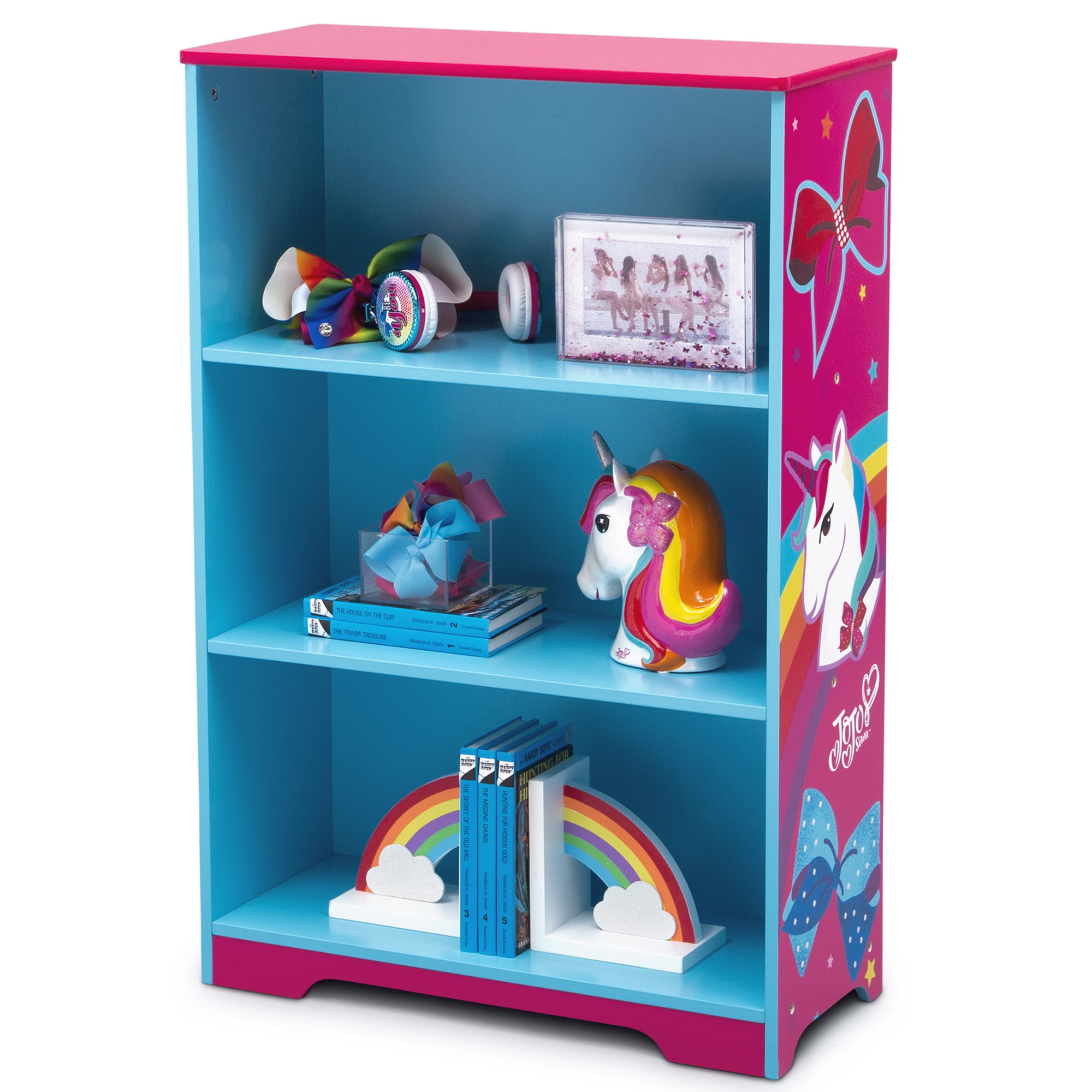 Delta Children Rainbow & Unicorn Deluxe 3-Shelf Bookcase – Greenguard Gold Certified, Pink
