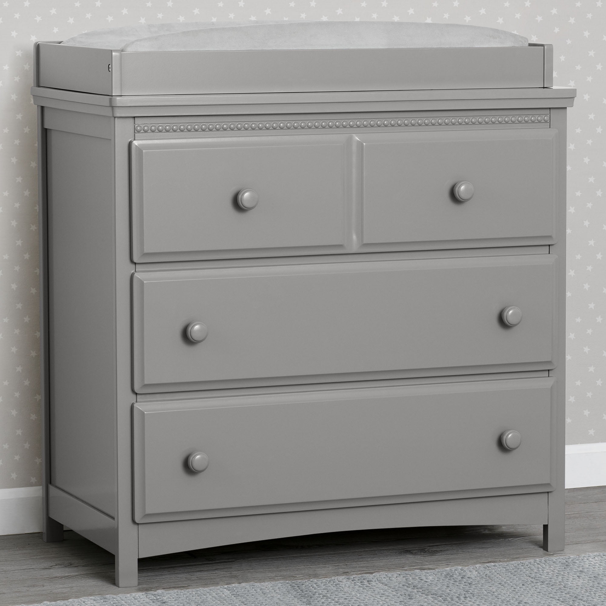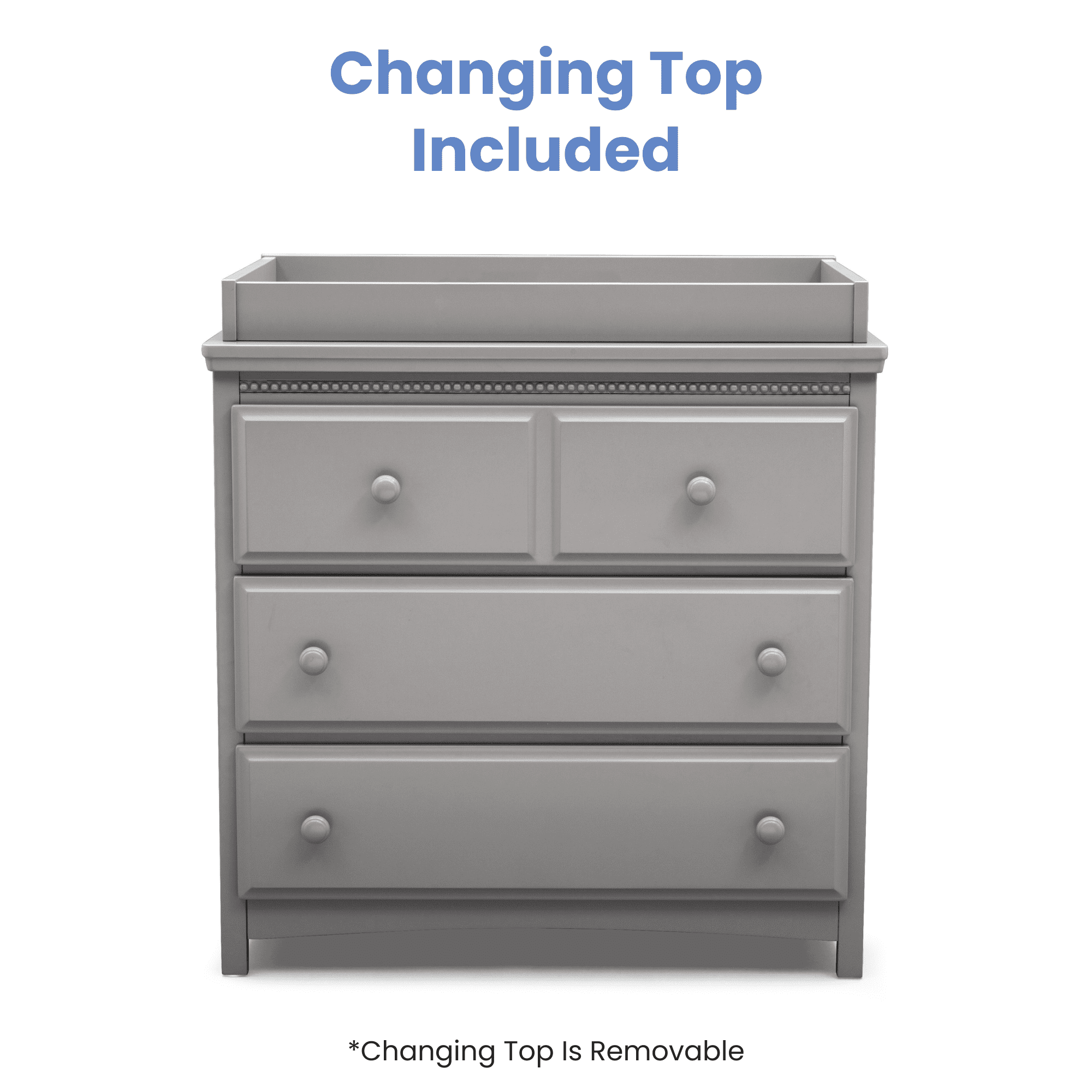 Delta Children Waverly 3 Drawer Dresser with Changing Top and Interlocking Drawers, Grey