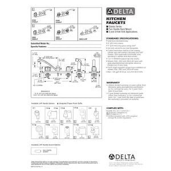 Two-Handle Kitchen Faucet: This kitchen faucet set features easy-to-operate blade handles, a 9″ long spout, and a 360-degree swing for added convenience The Delta Faucet Classic Kitchen Faucet has traditional, sensible styling that is sure to complement a variety of different styles Our Classic kitchen faucet features a 3-hole, 8″ installation, making it a versatile addition to your kitchen fixtures The two-handle faucet ensures ease of use for all, with an ADA-compliant design that marries functionality with style At Delta Faucet, our goal is to create quality bathroom and kitchen fixtures you can count on
