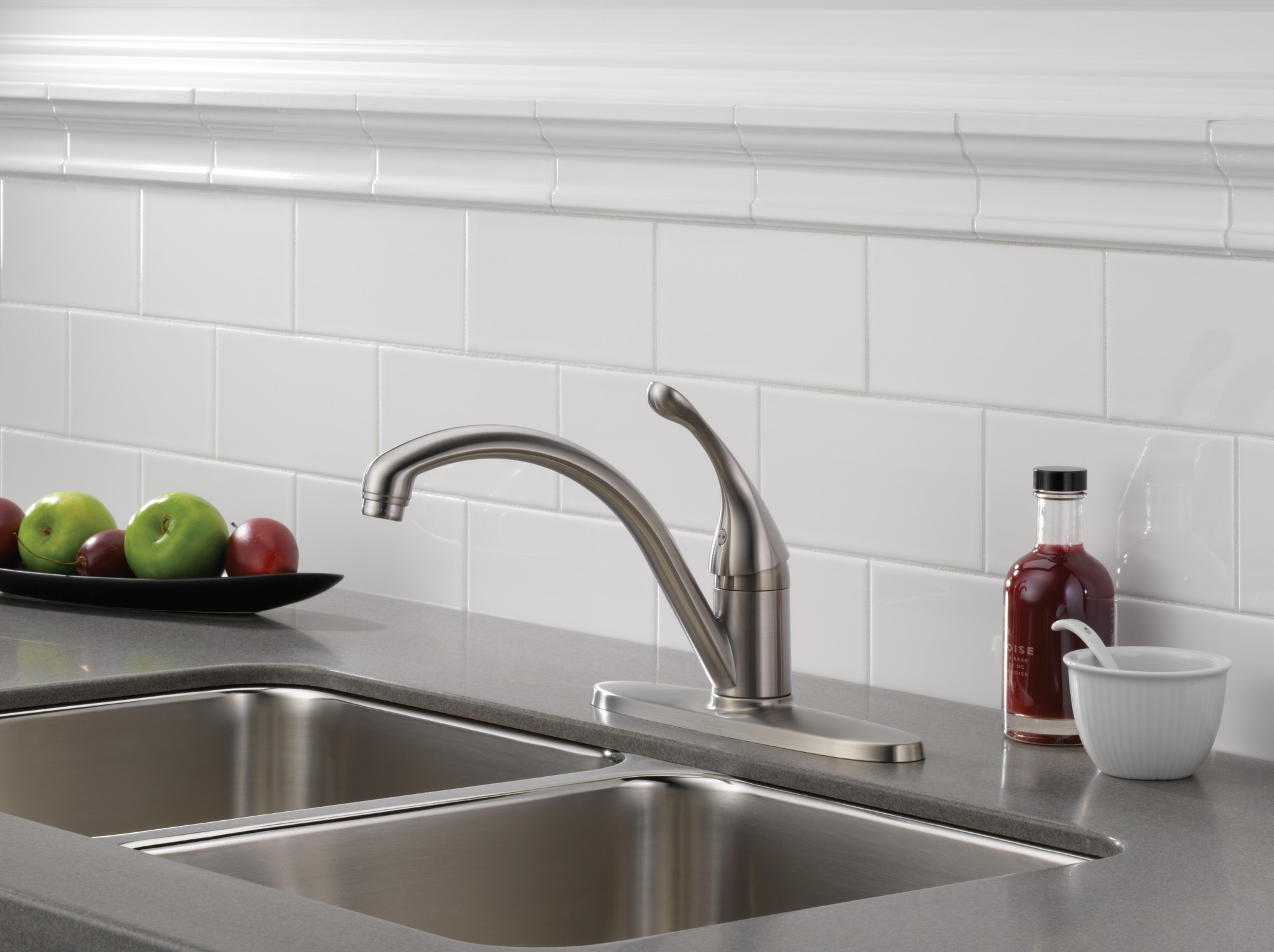 For installation with 3 holes on 8-in. centers Constructed of brass Available in a variety of finishes Transitional style Single handle 1.8 gpm flow rate Includes a lifetime faucet and finish warranty