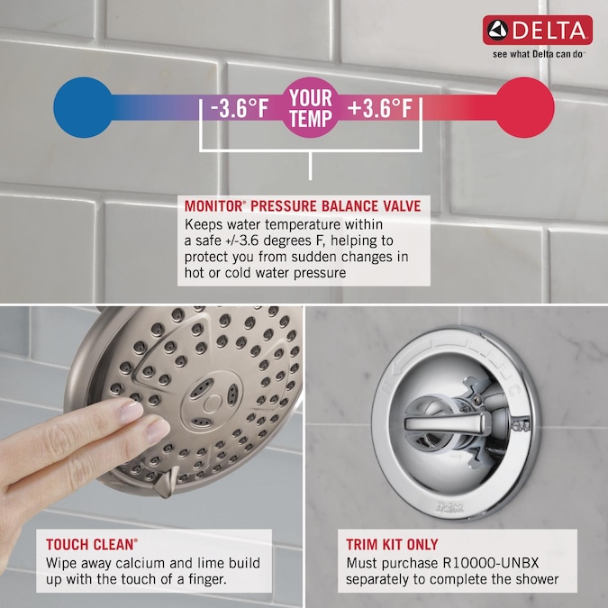 - Monitor pressure balance valve keeps water temperature within a safe +/-3degrees F (+/-1.6degrees C), helping to protect you from sudden changes in hot or cold water pressure