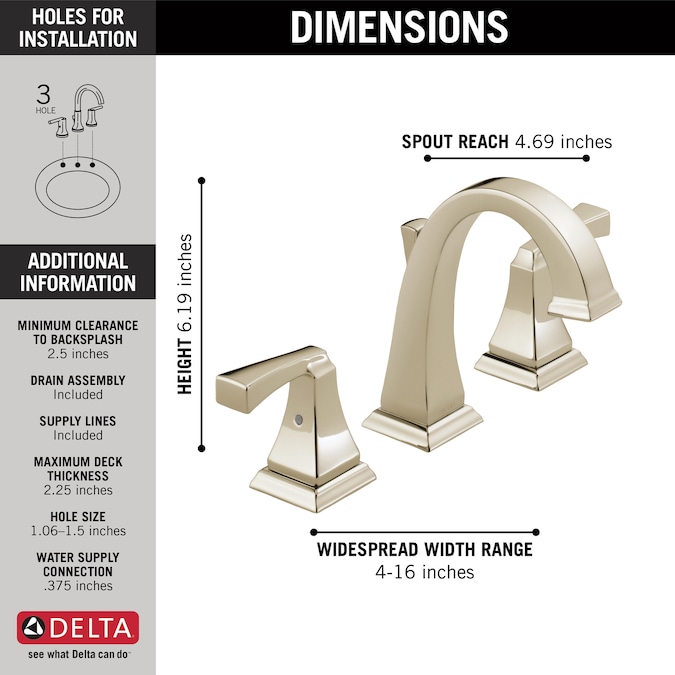 The clean lines and geometric forms of the Dryden™ Collection, derived from style cues of the Art Deco period, offer a simple yet sophisticated design. Delta® faucets with DIAMOND™ Seal Technology perform like new for life with a patented design which reduces leak points, is less hassle to install and lasts twice as long as the industry standard. You can install with confidence, knowing that Delta faucets are backed by our Lifetime Limited Warranty. Delta WaterSense labeled faucets use at least 20% less water than the industry standard—saving you money without compromising performance.
