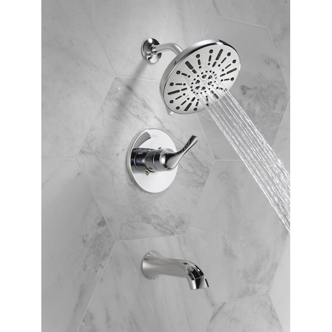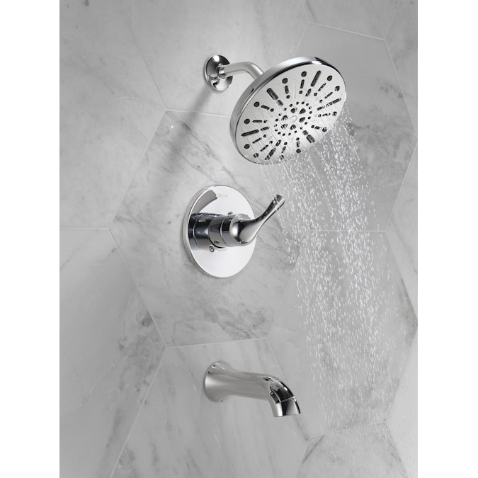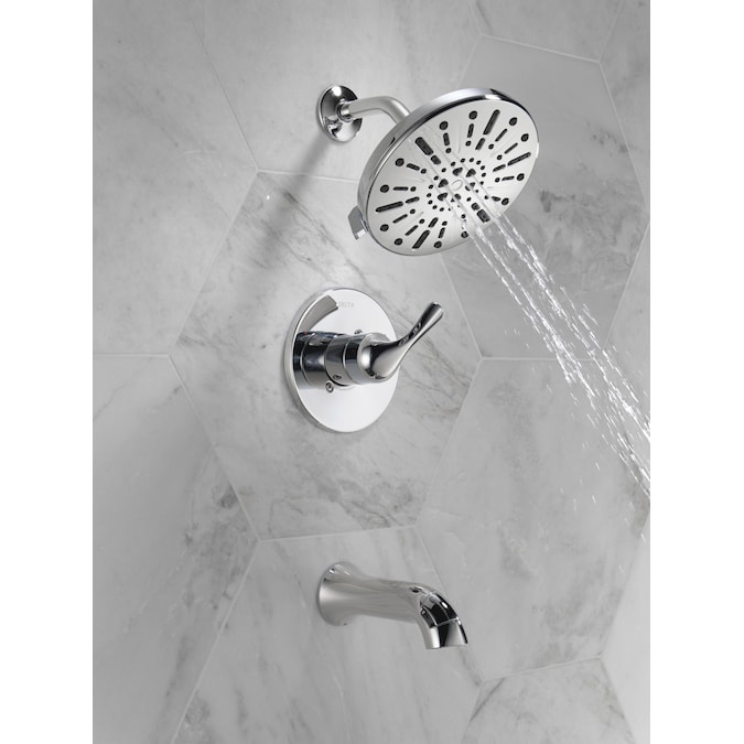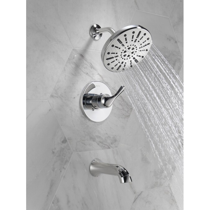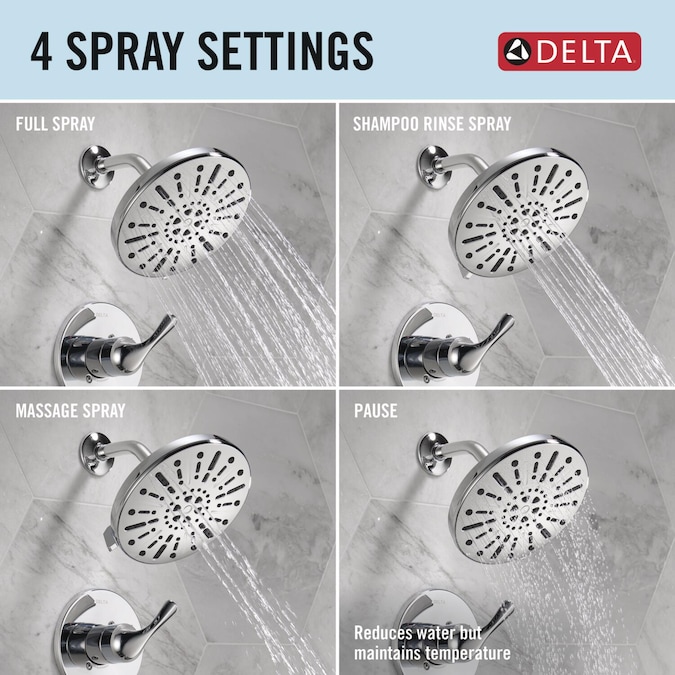 Bring clean lines and subtle details to your bath with the Eldren™ Bath Collection. Delta® SpotShield® Technology helps to keep your shower cleaner, longer by resisting water spots and fingerprints. While other products may gather unsightly mineral buildup over time, soft rubber Touch-Clean® spray holes allow any mineral residue to simply be wiped away for an instantly refreshed look — with no need for soaking or the aid of chemical cleaners. The pause spray setting gives you ample space for shaving, lathering and other shower tasks, then easily restarts the water with the temperature where you left off. This spray setting helps you conserve water, so you can worry less about depleting your supply of hot water — and you help the environment too. WaterSense® labeled faucets, showers and toilets use at least 20% less water than the industry standard — helping you save water without compromising performance. You can install with confidence, knowing Delta products are backed by our Lifetime Limited Warranty.