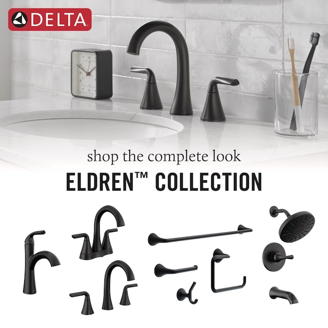 Bring clean lines and subtle details to your bath with the Eldren™ Bath Collection. Delta® SpotShield® Technology helps to keep your shower cleaner, longer by resisting water spots and fingerprints. While other products may gather unsightly mineral buildup over time, soft rubber Touch-Clean® spray holes allow any mineral residue to simply be wiped away for an instantly refreshed look — with no need for soaking or the aid of chemical cleaners. The pause spray setting gives you ample space for shaving, lathering and other shower tasks, then easily restarts the water with the temperature where you left off. This spray setting helps you conserve water, so you can worry less about depleting your supply of hot water — and you help the environment too. WaterSense® labeled faucets, showers and toilets use at least 20% less water than the industry standard — helping you save water without compromising performance. You can install with confidence, knowing Delta products are backed by our Lifetime Limited Warranty.