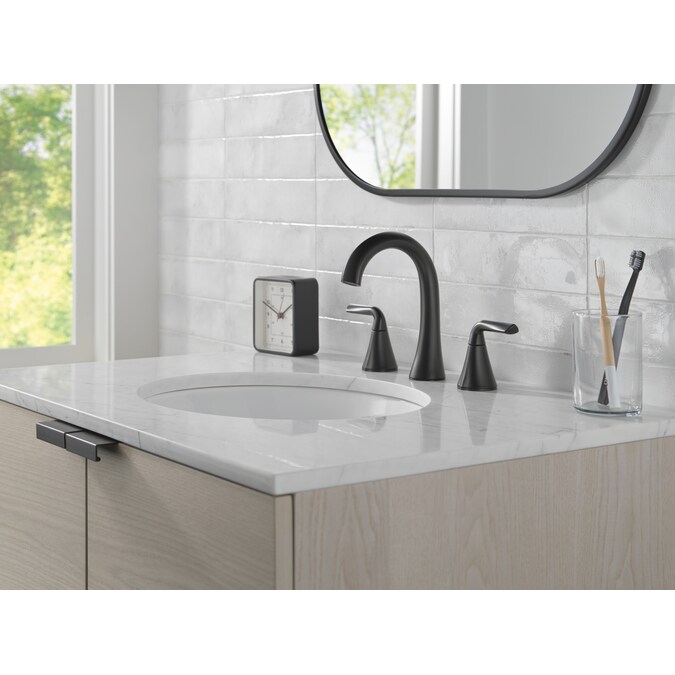 Delta Eldren Matte Black Widespread 2-Handle WaterSense Bathroom Sink Faucet with Drain
