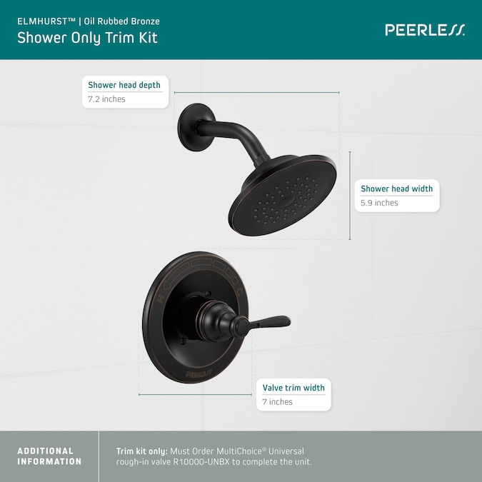 Timeless and elegant, the Peerless® Elmhurst® collection brings the charm of traditional design to the bath. While other products may gather unsightly mineral buildup over time, Peerless soft rubber Touch-Clean® spray holes allow any mineral residue to simply be wiped away for an instantly refreshed look – with no need for soaking or the aid of chemical cleaners. Peerless WaterSense® labeled showers use at least 20% less water than the industry standard — helping you save water without sacrificing performance. You can install with confidence, knowing that Peerless products are backed by our Lifetime Limited Warranty.
