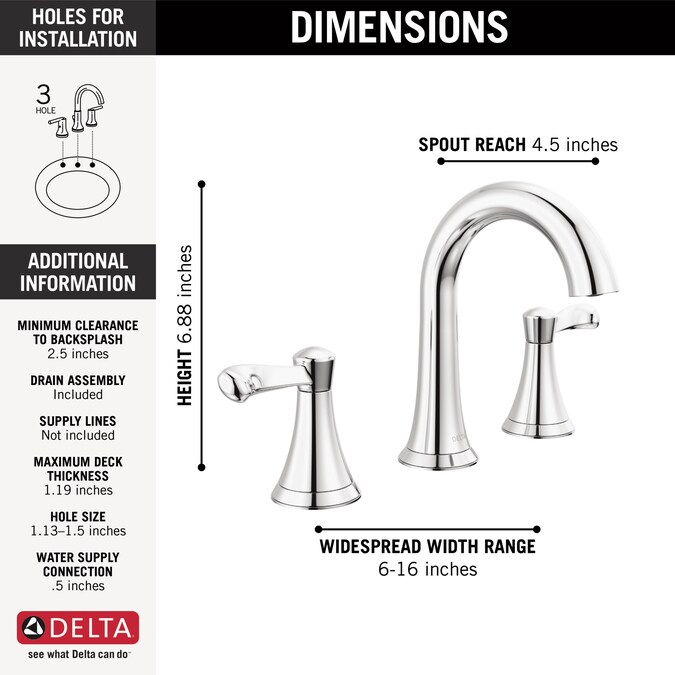 - Fits 3-hole 6-16 inch installations