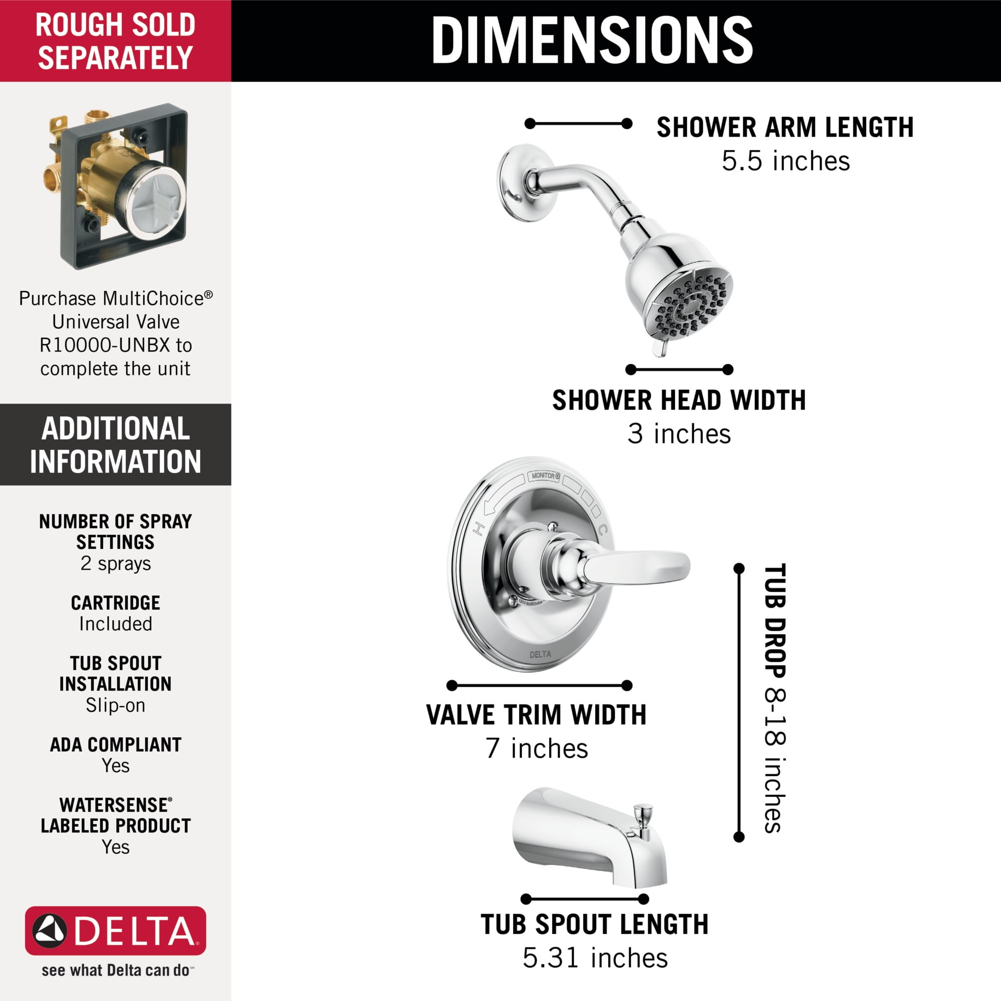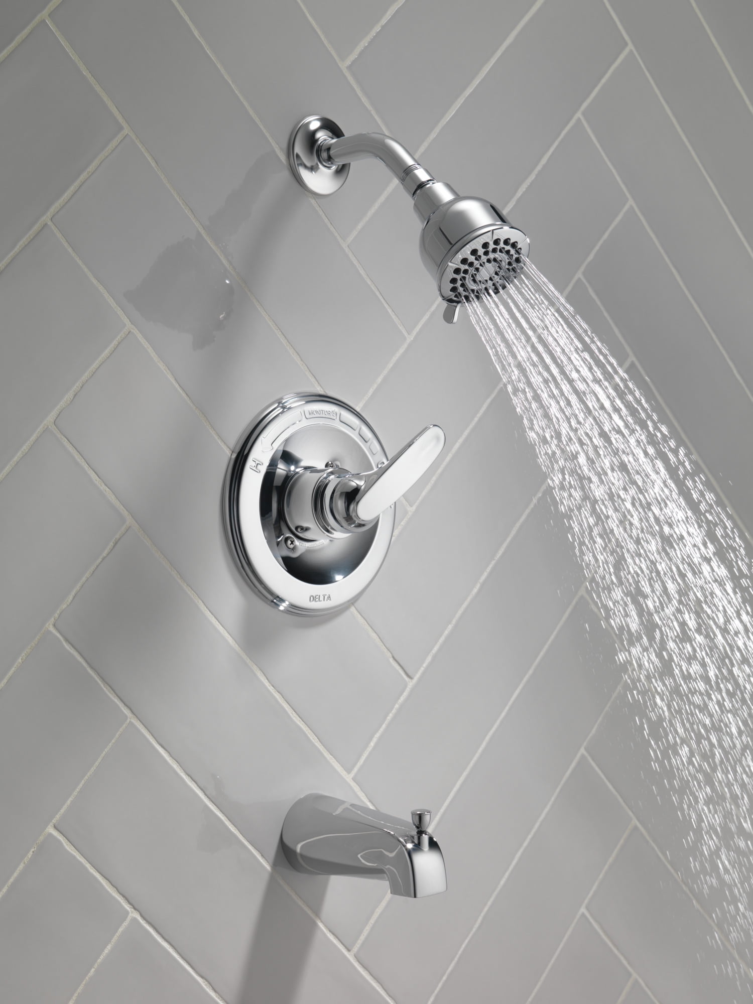 Simple, yet cleanly defined curves make the Foundations Bath and Kitchen Series a well-suited accent to any decor style Monitor shower heads, faucets, and handles feature a pressure balance valve that keeps water temperature within a safe range Please note this shower trim kit only includes the shower head, faucet, and handle; the rough-in (R10000 series) must be purchased separately The bathtub handle ensures ease of use for all, with an ADA-compliant design that marries functionality with style At Delta Faucet, our goal is to create quality bathroom and kitchen fixtures you can count on