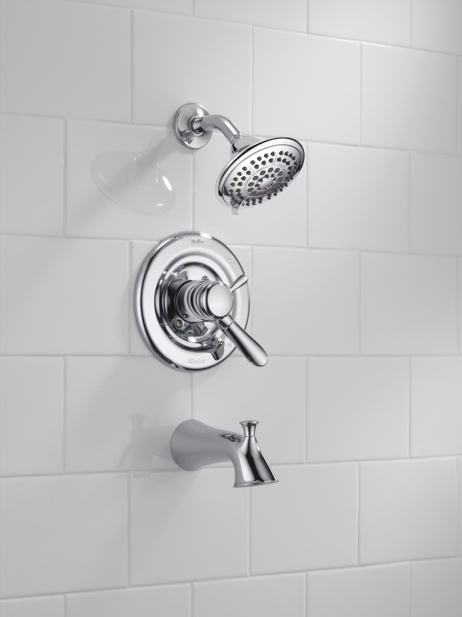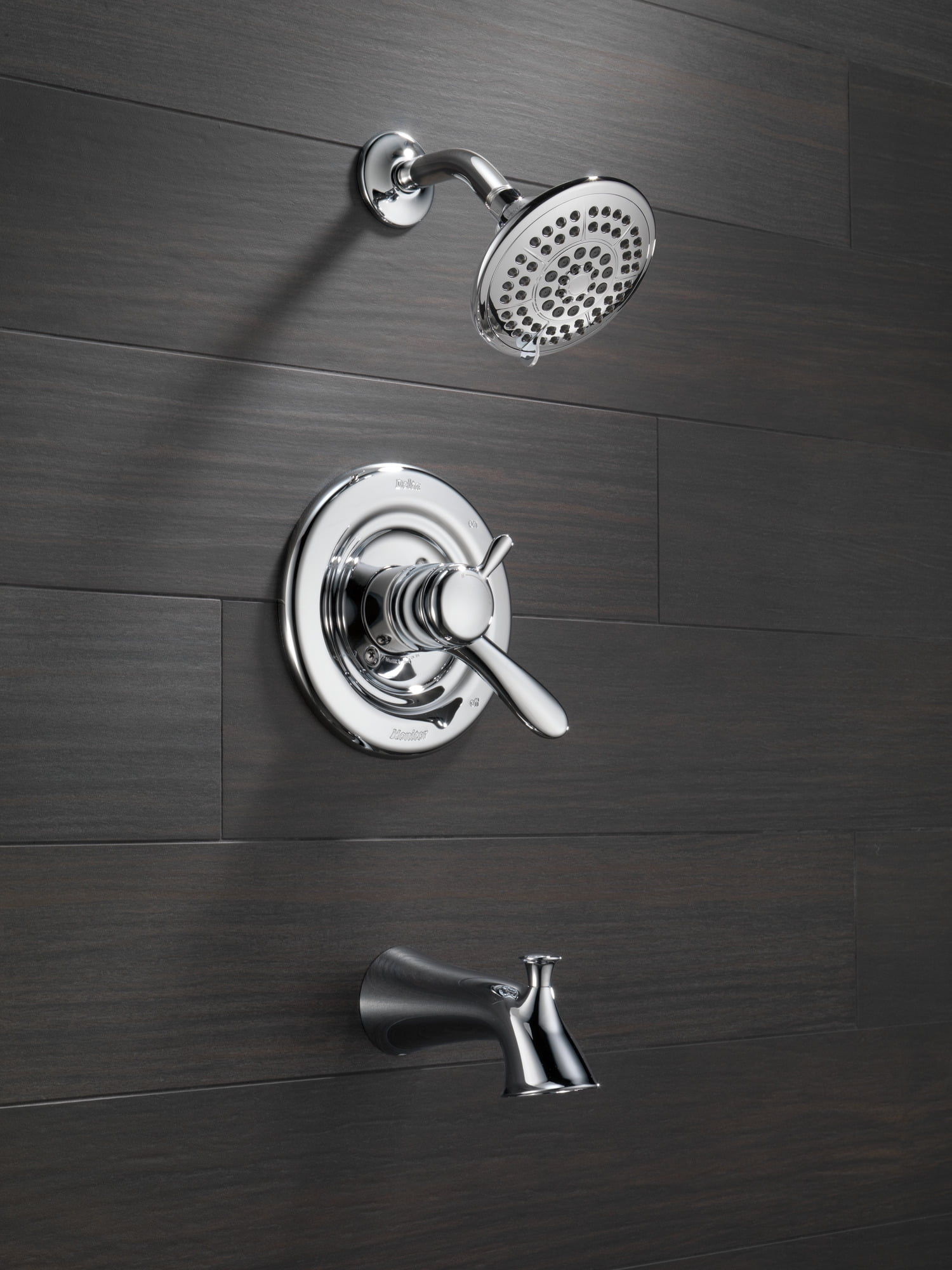 The Lahara Collection features sleek, modern lines that are sure to complement your bathroom decor Monitor shower heads, faucets, and handles feature a pressure balance valve that keeps water temperature within a safe range Please note this shower trim kit only includes the shower head, faucet, and handle; the rough-in (R10000 series) must be purchased separately The shower handle ensures ease of use for all, with an ADA-compliant design that marries functionality with style At Delta Faucet, our goal is to create quality bathroom and kitchen fixtures you can count on