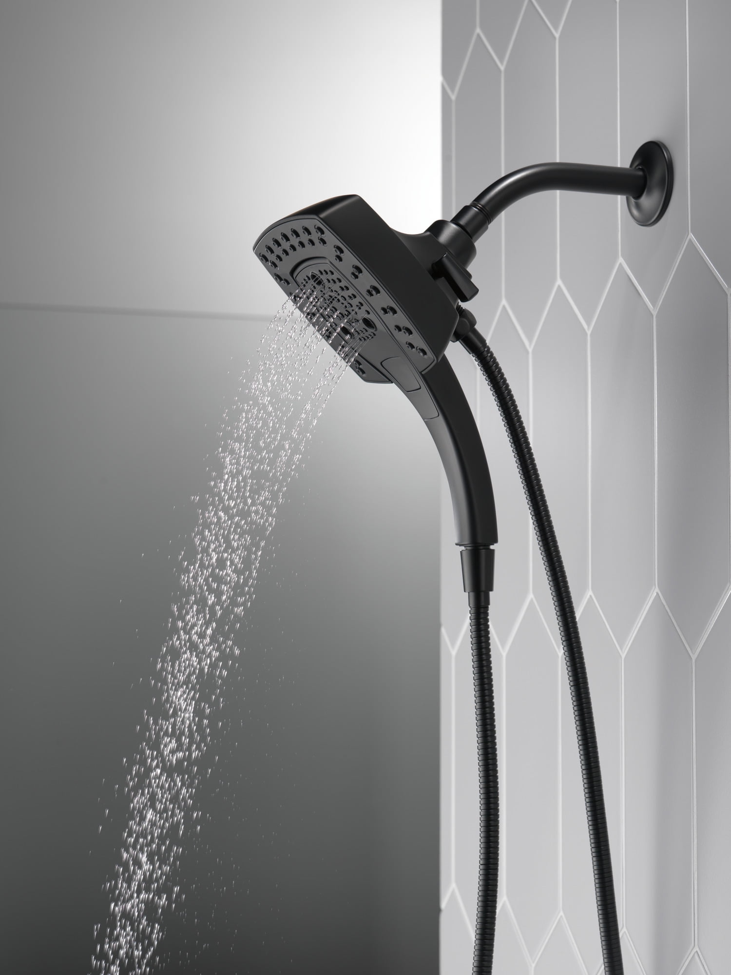 Our H2Okinetic PowerDrench shower head sculpts water into a unique pattern, forming a powerful drench spray The In2ition Two-in-One Shower gets water where you need it most using the integrated shower head and hand shower separately or together Our shower systems use at least 20% less water than the industry standard without compromising performance The soft, rubber Touch-Clean spray holes in this shower fixture allow you to easily wipe away calcium and lime build-up At Delta Faucet, our goal is to create quality bathroom and kitchen fixtures you can count on
