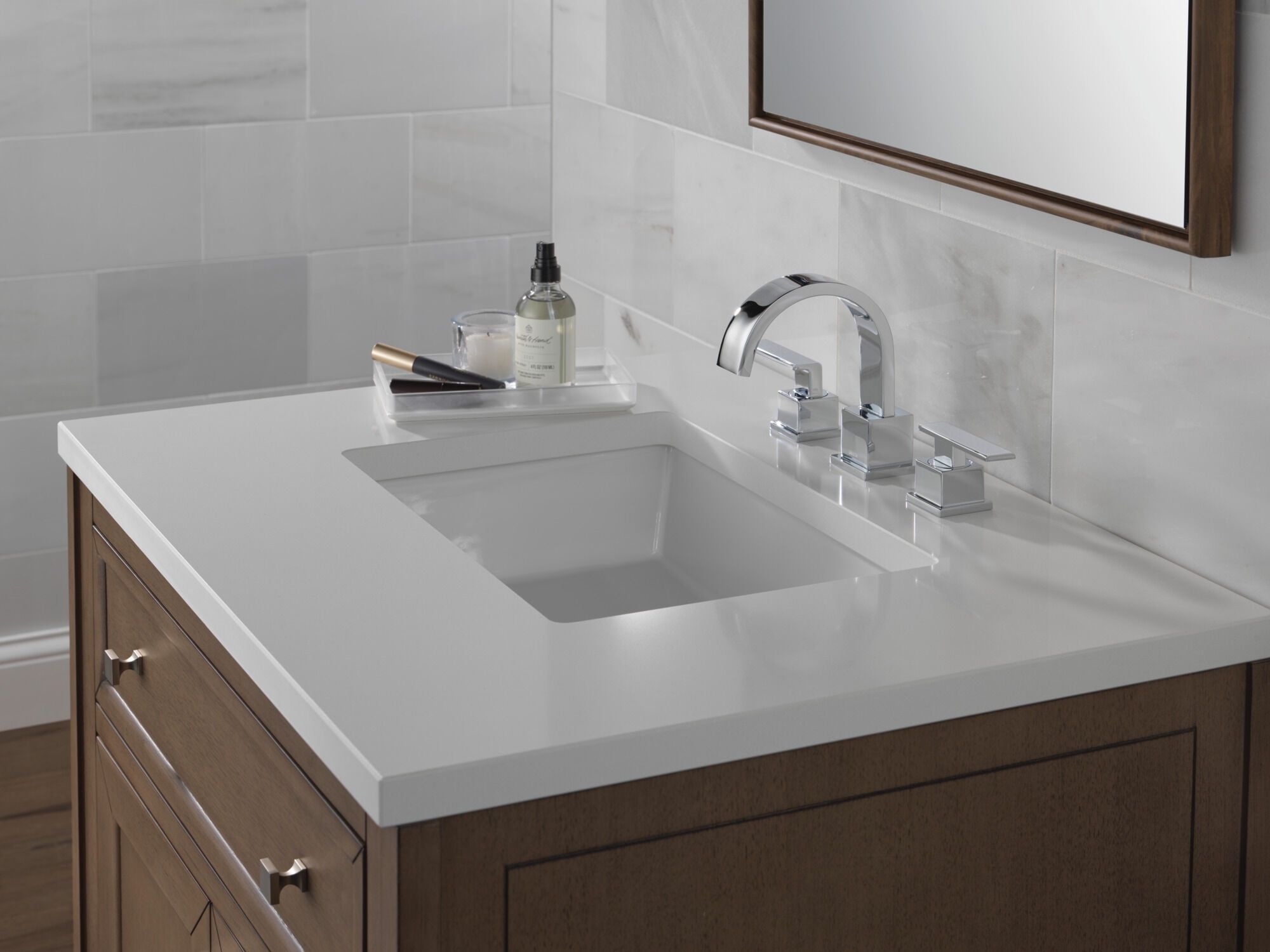 Inspired by the slim lines and graceful arc of a ribbon, the Vero Collection offers a high-end, modern look for your bathroom decor Our bathroom faucet features a 3-hole, 6–16″ installation, making it a versatile addition to your bathroom fixtures The Delta Faucet Two-Handle Bathroom Faucet uses at least 20% less water than the industry standard without compromising performance These bathroom sink handles ensure ease of use for all, with an ADA-compliant design that marries functionality with style At Delta Faucet, our goal is to create quality bathroom and kitchen fixtures you can count on