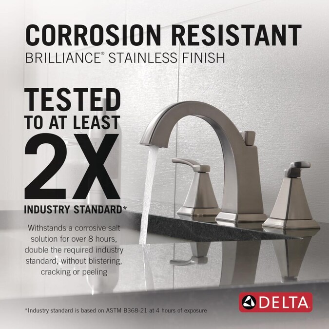 Designed to look like new for life, Brilliance® finishes are developed using a proprietary process that creates a durable, long-lasting finish that is tested to resist corrosion, tarnish or discolor. You can install with confidence, knowing that Delta faucets are backed by our Lifetime Limited Warranty.